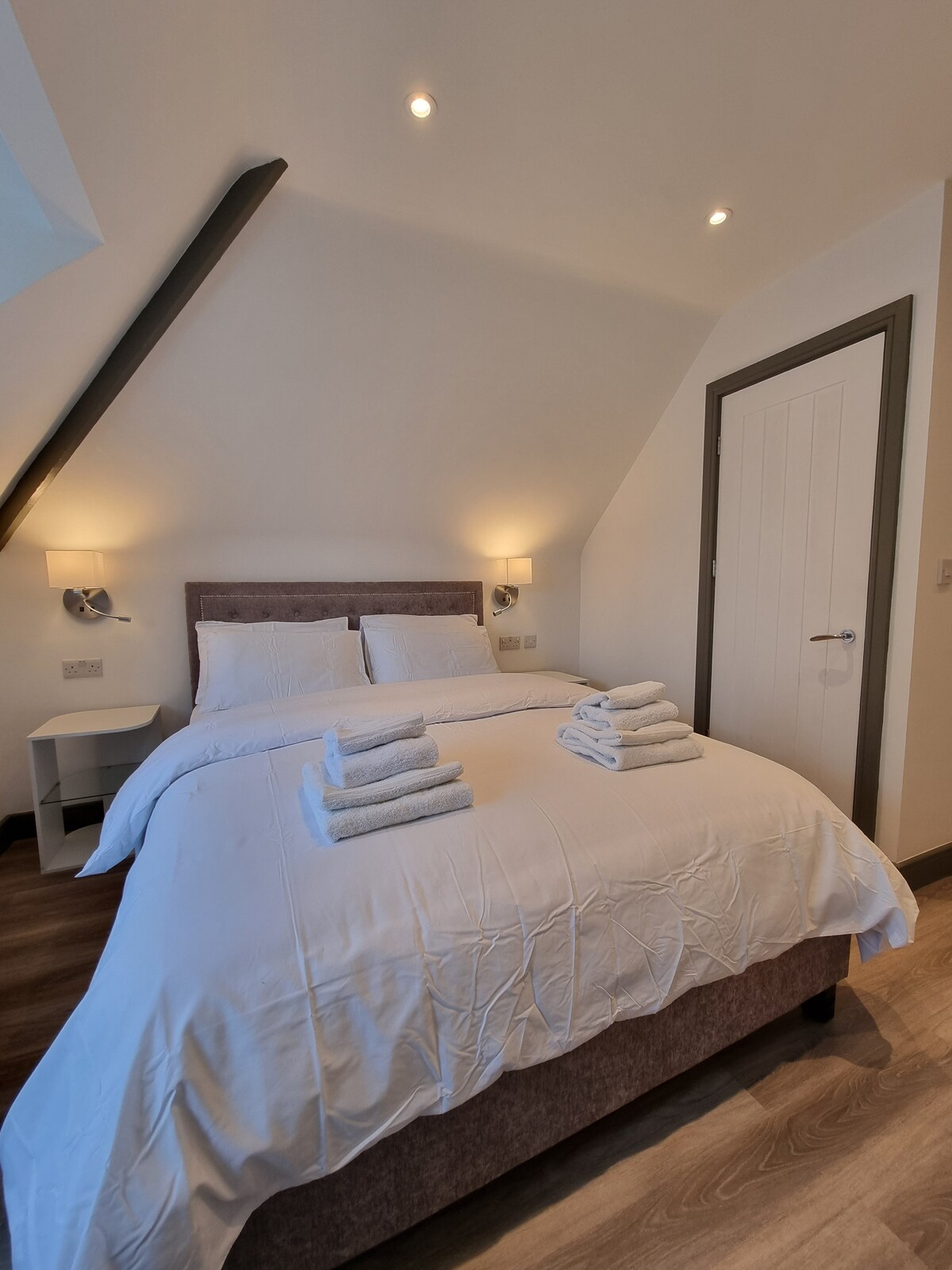 Tucked at the top of The Hermes Hotel, the White Lodge Loft is a charming hideaway full of character. With its sloping ceilings, heritage details, and cozy atmosphere, this boutique loft is perfect for two guests seeking a romantic retreat in Kingston. As part of our seventeenth-century heritage property, White Lodge combines the quirky charm of a historic building with the comfort of a modern stay.