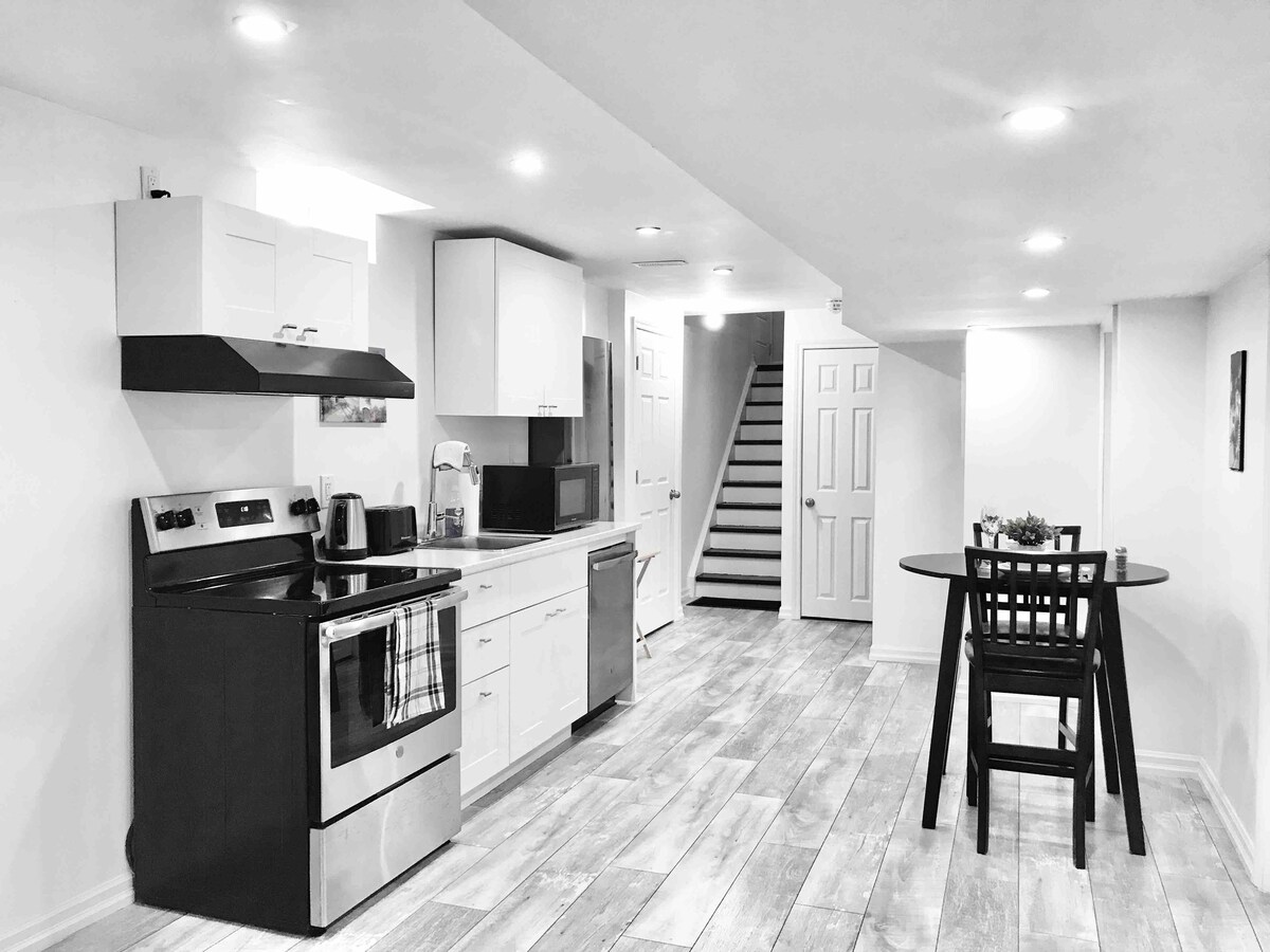 在舒適而寬敞的地下室套房中享受賓至如歸的體驗。距離Royal Victoria Hospital & Georgian College僅幾步之遙,可前往附近的HWY 400 ,距離Barrie市中心的風景優美的海濱僅幾分鐘路程。乾淨、現代化的空間,專為便利而設計,非常適合短期或長期住宿。舒適的度假好去處,期待你的到來 主要亮點 >套房內洗衣間 >自助入住 >可收看 Netflix、Youtube 和 PrimeVideo 的智慧電視 >標準雙人床 >配備所有必要烹飪器具的廚房 >WiFi 擴展器,提供快速 WiFi
