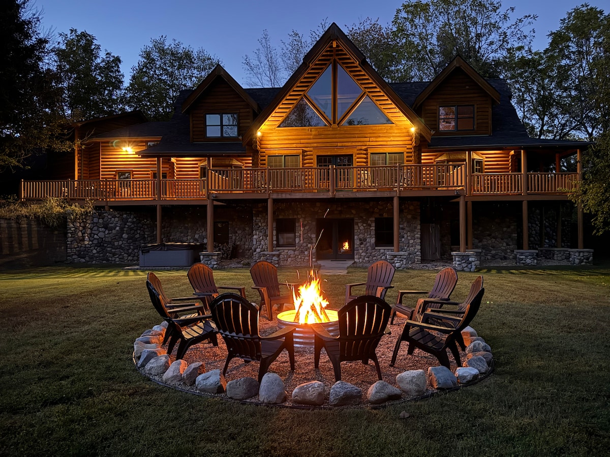 6BR Log Cabin | King Ensuites | Hot Tub | 8 Acres