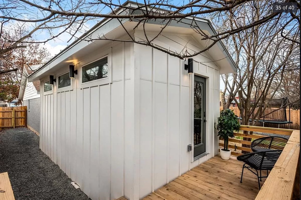Modern back-house with an abundance of natural light includes a small kitchen with burner, full bathroom with glass panel shower, couch and smart tv lounge area and a queen sized bed. Private entrance with a private deck to sit and enjoy mornings and evenings. Located in a quiet neighborhood five minutes to restaurants, supermarkets, shops and 12 min away from South congress, Barton Springs, downtown and much more! The neighborhood also has access to the Stephenson nature trails.