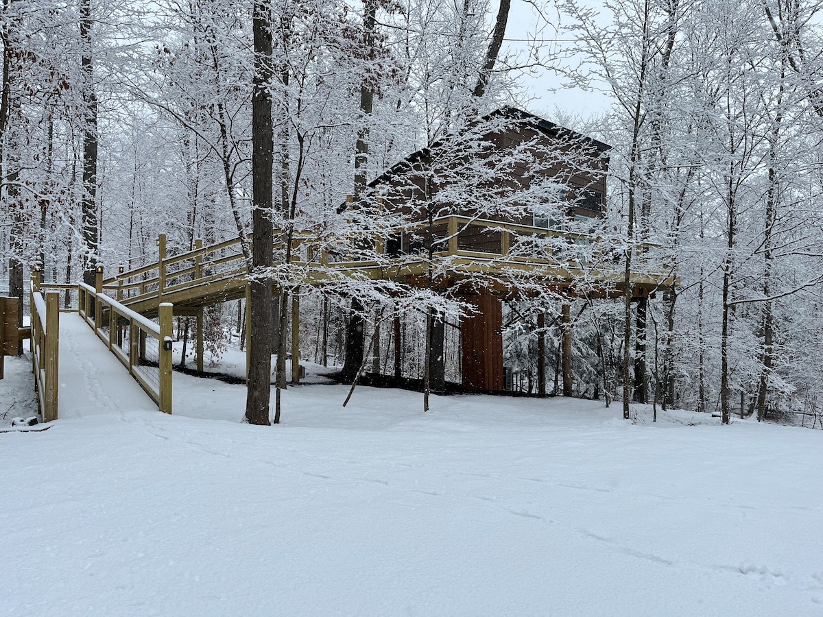 樹屋。在這個難忘的度假勝地與大自然重新連接。 坐落在28英畝的樹林中,有徒步道。 這個獨特的新建全電動525平方英尺高架結構提供一個環繞的甲板,可欣賞不斷變化的景觀。 加大雙人床和新技術泡綿在獨立的氣候控制臥室中提供完整的舒適。 加熱的浴室地板是一個「溫暖」的驚喜。 可選室外淋浴間,適合冒險精神。 廚房一應俱全,方便地藏在大房間內。