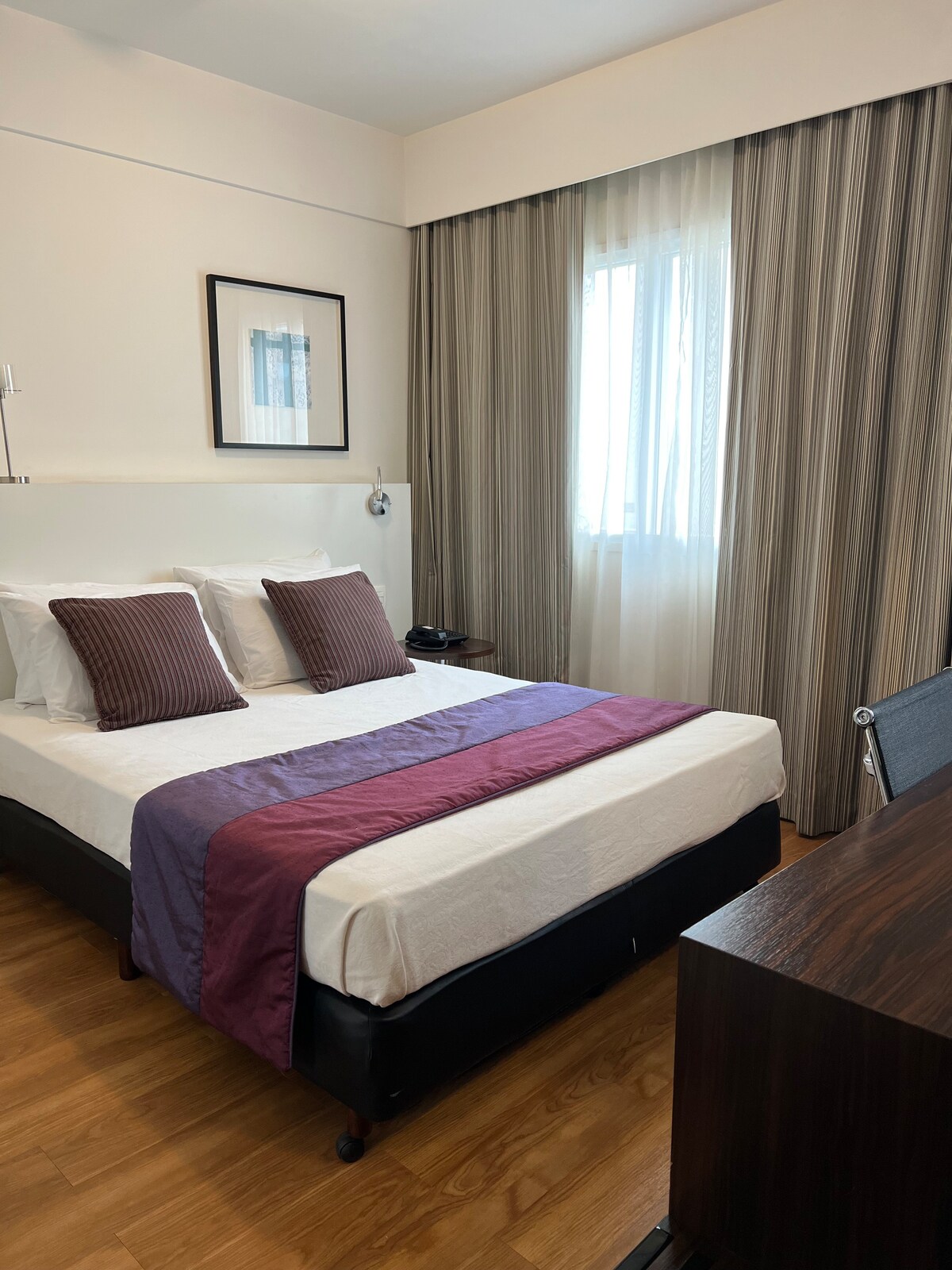 Apartamento aconchegante com excelente localização no centro de Alphaville! Próximo à padarias, mercados, shoppings, centro comercial, restaurantes, bancos, farmácias e hospitais. Localizado em rua silenciosa, segura e tranquila, o edifício conta com: Recepção 24h. Restaurante com café da manhã, almoço e jantar (consultar valores no restaurante). Academia. Piscina (no momento encontra-se em reforma) Entre outros… OBS: é possível separar as camas para 2 de solteiro.