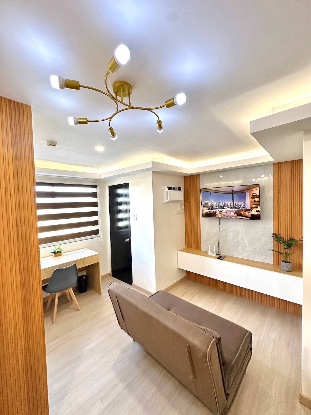 Experience comfort and style in this cozy wooden-themed condo. Blending Japandi and minimalist design, it features a sliding bed, folding sofa, work desk, fast Wi-Fi, Smart TV with Netflix, and a fully equipped kitchen. Bright and airy with large windows and a glass partition—perfect for everyone, be it solo travelers, couples, remote workers, or even families!