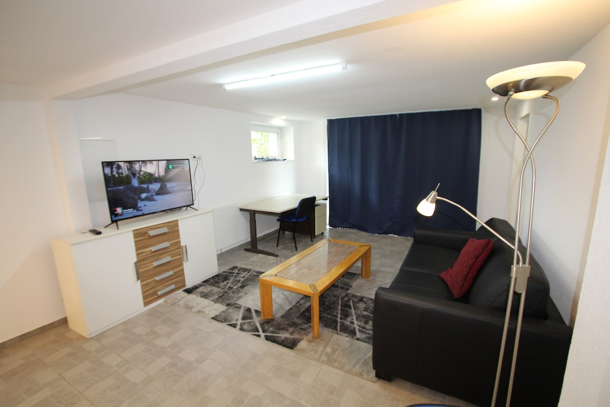 2 room studio 1 sleeping room with closet and double bed 180x200cm, desk, tv and sink 1 fully equipped kitchen with dining table and 6 chairs and beds 1 bathroom shower and toilet free wifi, unheated swimming pool from April to September, bus stop in 150 meters, train station 1.2 km to Liestal station. You reach Basel in 12 minutes by train. non-smoking, owner has 2 cats Guest card available with free public transport In consideration of our neighbours please check in before 9 pm.