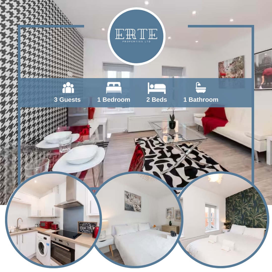 這間令人驚嘆的市中心豪華公寓位於貝辛斯託克的中心。 配有現代舒適的家具、設備齊全的廚房,配有洗碗機、冰箱和洗衣機。 有一臺配備免費觀看的高清智慧電視、亞馬遜/Netflix和網頁串流服務。 提供高速WiFi ,因為標準和專業的出口清潔包含在所有住宿中。 如果住宿超過7晚,我們會提供每週清潔服務。