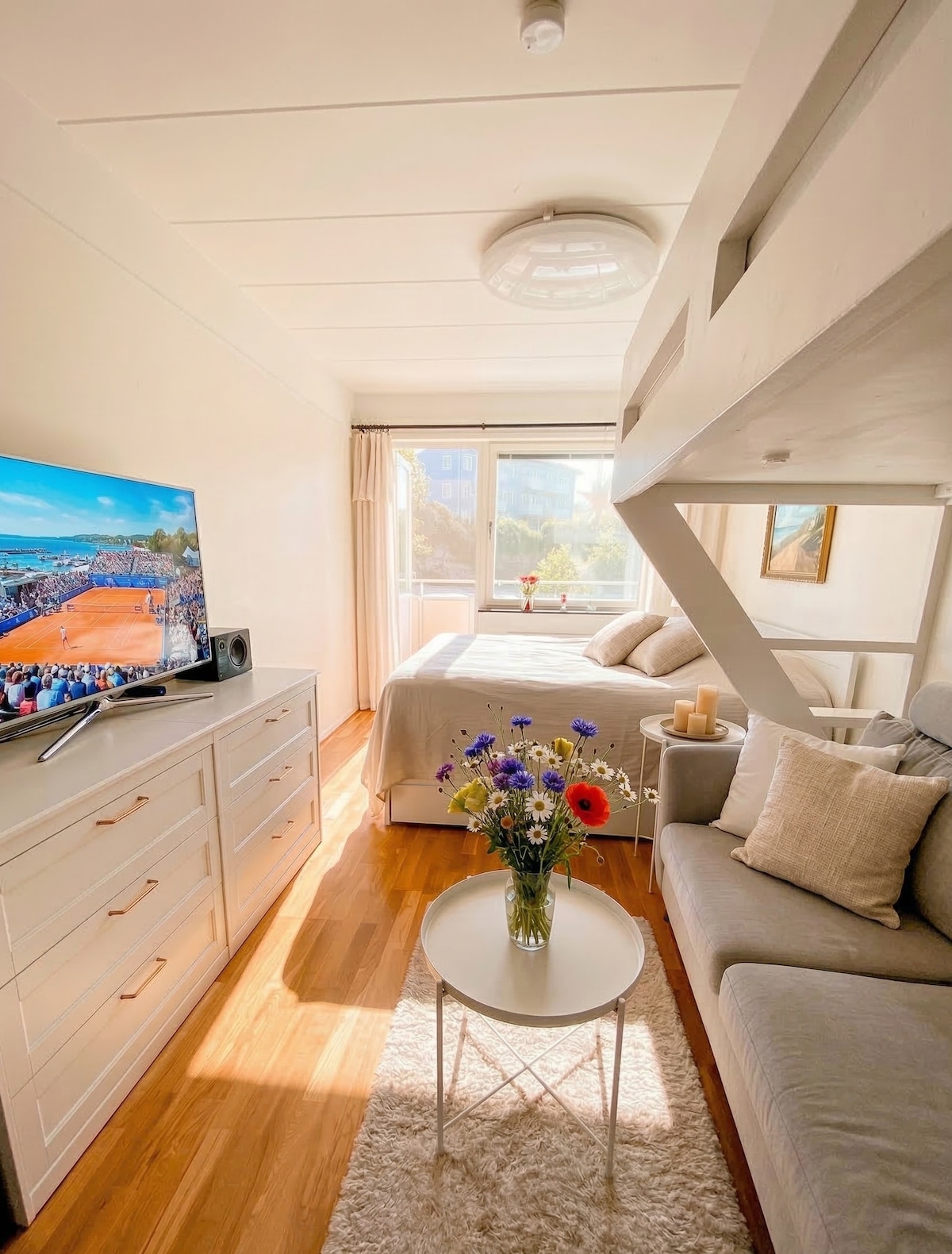 從這個地理位置優越的30平方英尺的房源可輕鬆前往任何地方 2間臥室和1間小廚房,有用餐區域,浴室配有淋浴間和馬桶。 一間臥室,兩張單人牀。 第二間臥室是單人牀。 廚房有2個電熱爐、微波爐、冰箱和冰櫃。 有電視,但沒有頻道。 透過自己的帳號串流Netflix或Viaplay。 步行即可抵達商店、網球場、海灘、大海和港口。 步行幾分鐘即可抵達前往Båstad站的巴士。免費停車。
