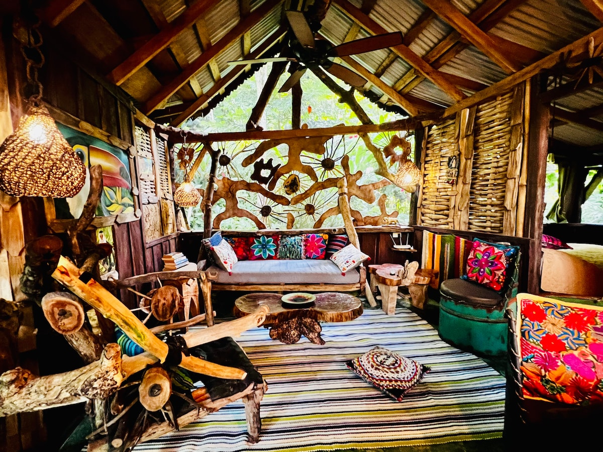 在叢林的聲音中入睡,在海浪的聲音中醒來。高架小屋設計讓您更接近樹冠及其野生動物,感覺就像樹屋!適合大自然愛好者、衝浪者、探險家、白日夢者和獨立冒險者的理想場所。位於博卡斯鎮外(3.7英里),享受寧靜、隱私、空蕩蕩的海灘和世界一流的海浪。與大自然連接,從您的甲板上觀賞野生動物-這是真正的赤腳和自由的度假勝地!