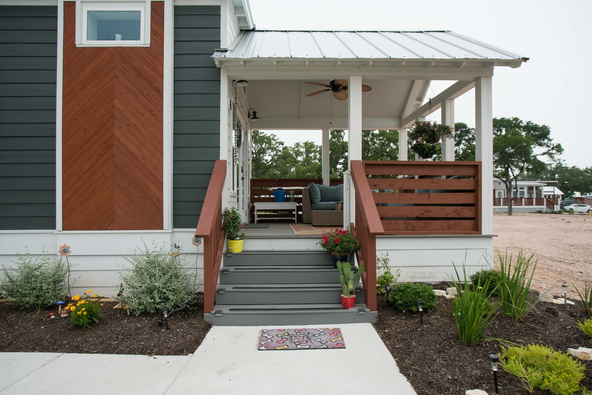 Wanna try Tiny living? Here's your chance. Simply Southern ATX is located in Village Farm Agrihood on the east side of Austin, near the Travis County Expo Center. Simply Southern sleeps 4 in two Queen beds; bedroom downstairs with door, loft is 2nd bedroom. Large bathroom with walk-in shower, washer and dryer with detergent for your use. There are Roku TVs in both the Living room and Bedroom. Covered porch/patio space with couches.