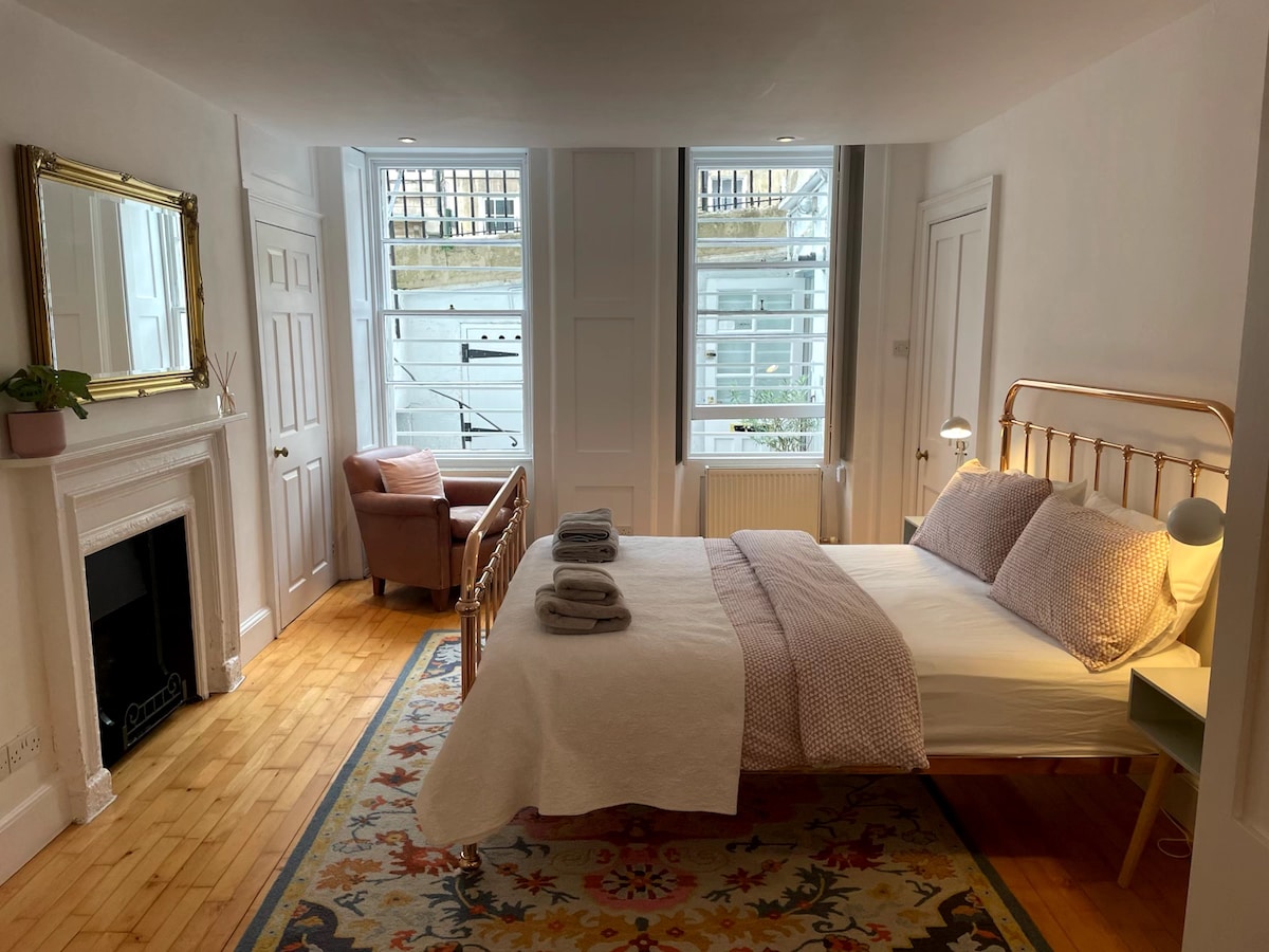 這間喬治亞聯排別墅擁有超過2,500平方英尺的明亮、通風的起居空間,分佈在5層樓上,有一個漂亮的戶外露臺區域。房源裝潢精美,配有Lincrusta鑲板、腰線板、木地板和現代家具。在住宿期間,您可能需要的一切物品都非常充足。優秀的5星評價。可提供額外的第4間房間。附近的曼弗街停車場或南門地下停車場可輕鬆停車。