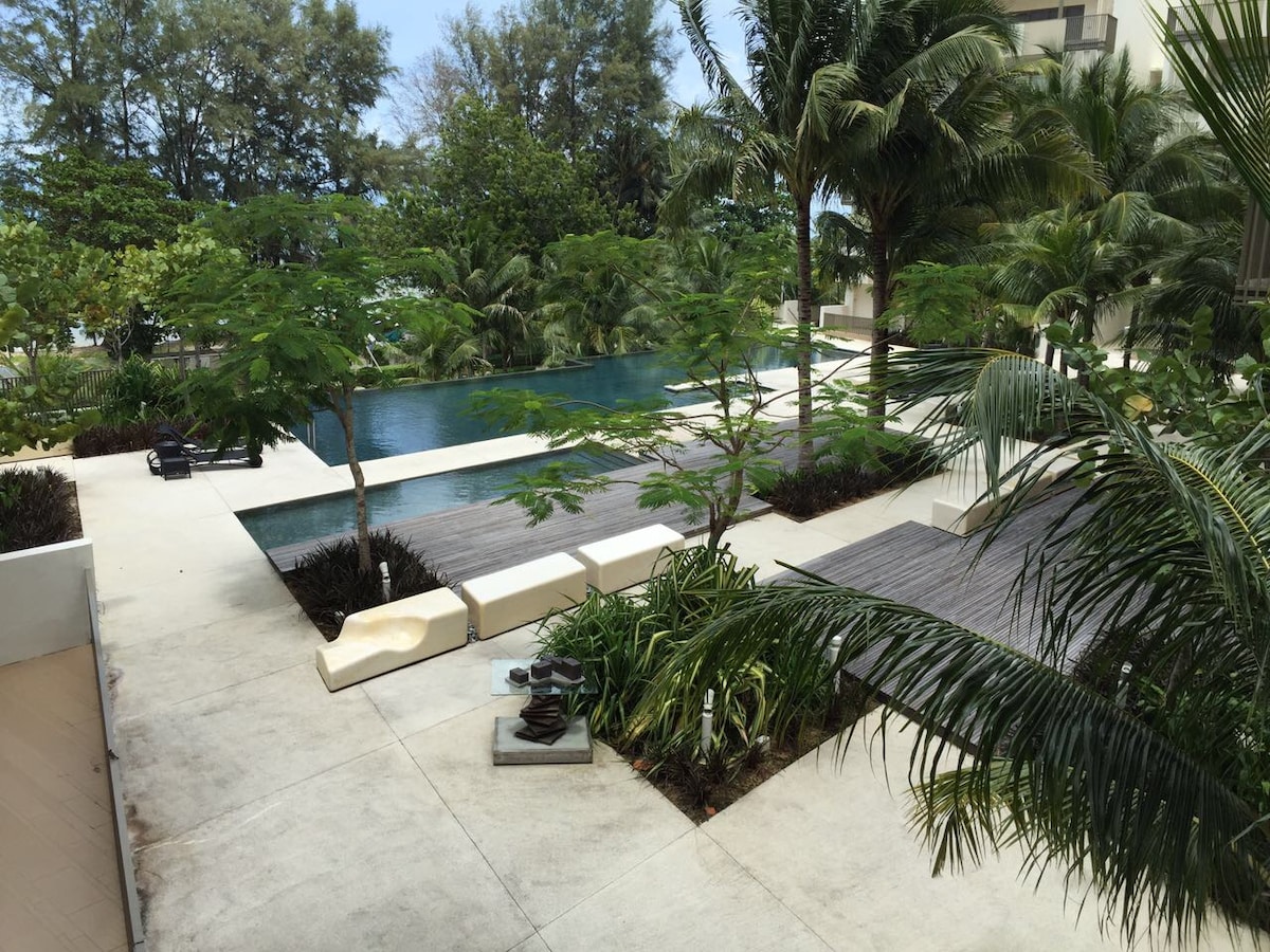 The only luxury homestay along Batu Ferringhi beach with direct access to beach, literally you just need to step out from the apartment to enjoy the sea, beach and water activities. Breezy 2 bedrooms for 5 adults: 1 king sized bed, 1 queen sized bed and one sofa bed in the living room. Beachfront pool, modern gym, playground Free wifi & cable tv, parking Best location to explore Batu Ferringhi area, and walking distance to local eateries, bars, spas, galleries & western restaurants
