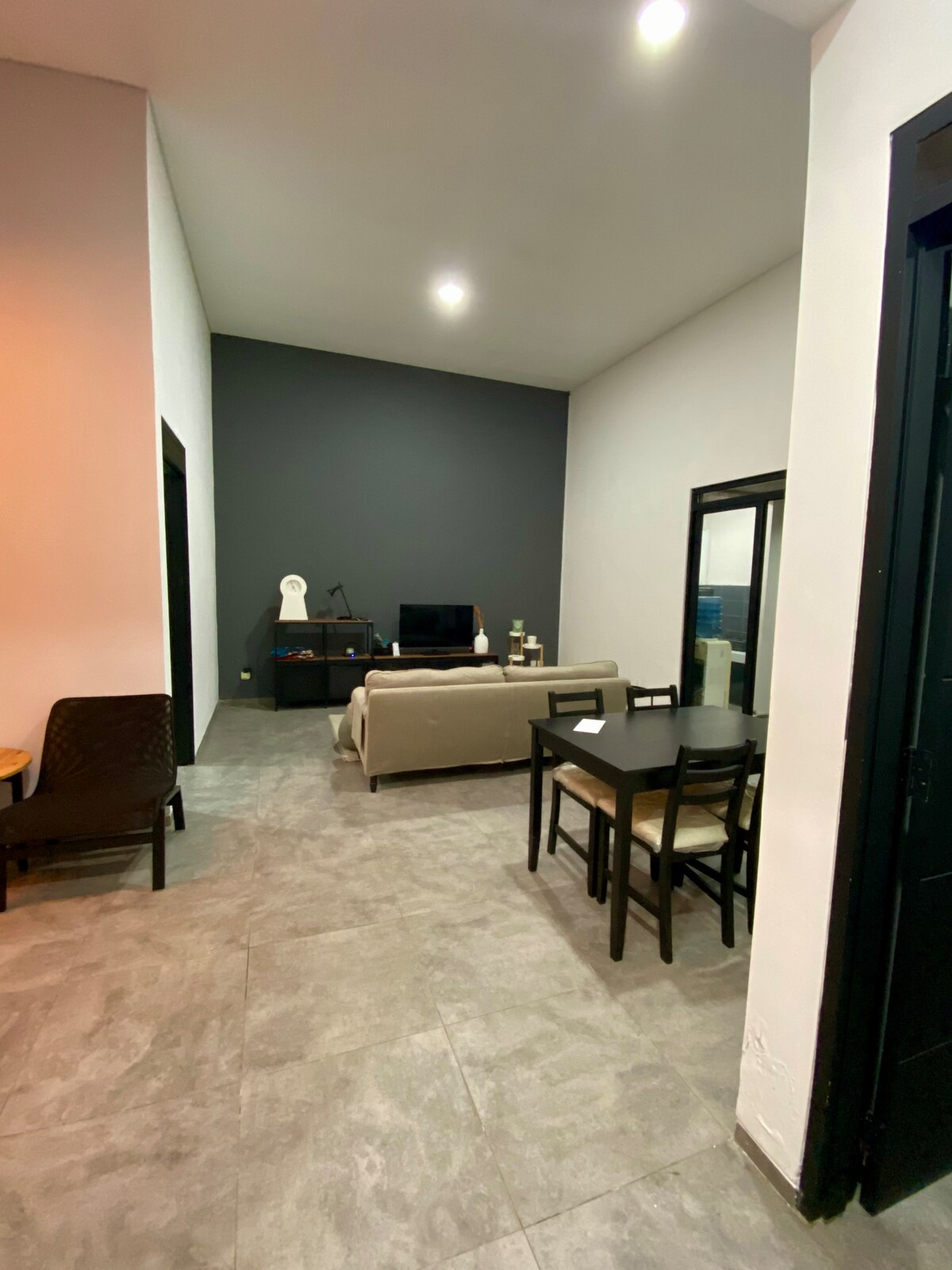 所有房間都有新的空調。 這棟別墅位於Lembang的現代設計。1400平方公尺的花園,配有巨大的甲板、火坑和燒烤。 寬敞的4間臥室/3間臥室房源,配有快速WiFi、Netflix、飯店標準牀單和毛巾,以及設備齊全的廚房。卡拉OK喇叭 注意: -最多可入住12人。 -提前入住或延遲退房每小時IDR 100,000 ,視可訂狀況而定。 -消防原木費用爲100印尼盾。 -洗衣服務30 rb/kg