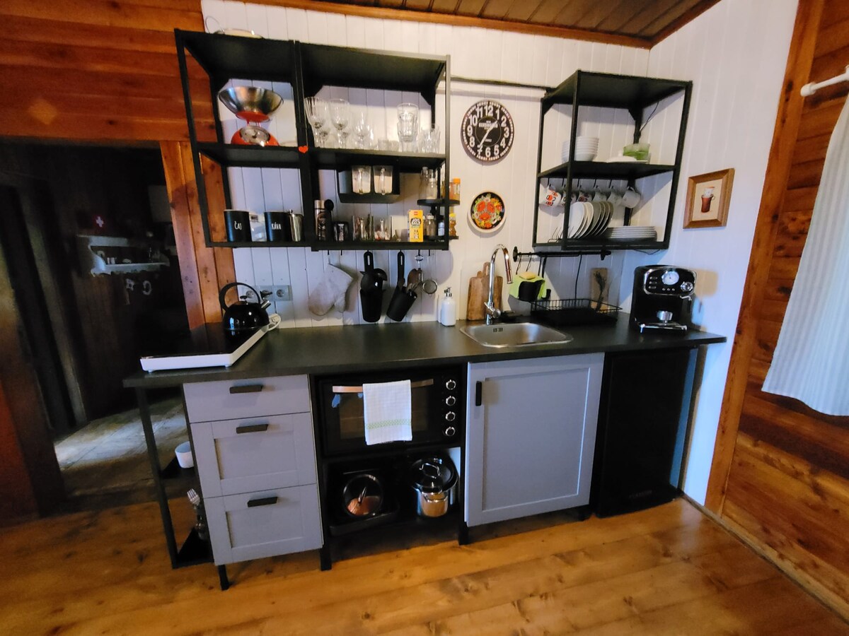 We offer a stay in a cozy traditional log house in peace and privacy. The house has lovely views and is located near forest and National Park. The living room has fireplace, kitchen and bathroom are fully equipped. Two bedrooms are in the second floor. Heating is provided by the fireplace, electricity is for keeping the house warm. Unlimited WiFi with a speed of approximately 28 Mbps. The ceilings in the first floor are low, please be careful not to hit your head!