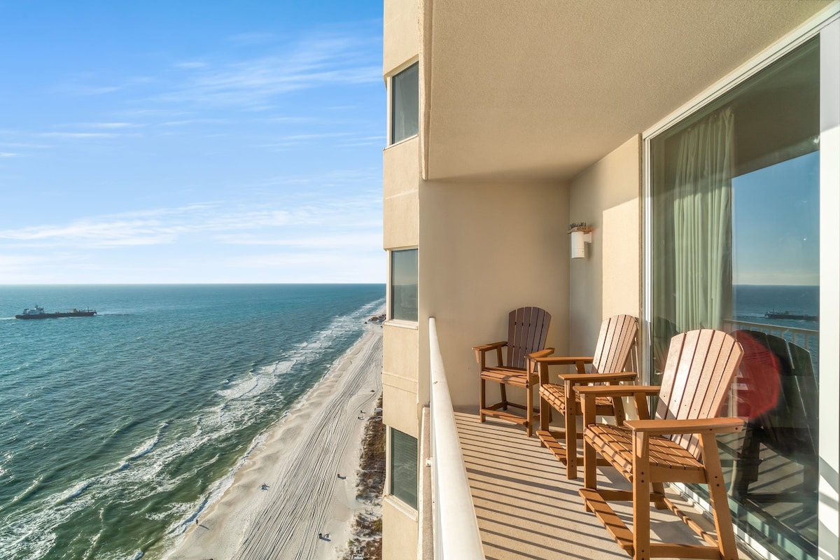 在這個時尚的地方與全家人一起享受樂趣。2間臥室和2間浴室, 13樓景觀,設備齊全,適合嬰兒和兒童入住。 2張嬰兒牀、高腳椅、馬車和沙灘玩具。 配有製冰機的酒吧。 主臥的噴射式花園浴缸。 Majestic Beach有5個泳池、3個按摩浴池、電影院、H2O Bar and Grill、星巴克、冰淇淋和商店! H2O提供海灘美食和飲料! 公寓內有6張沙灘椅和陽傘,或2張沙灘椅設有遮陽篷!
