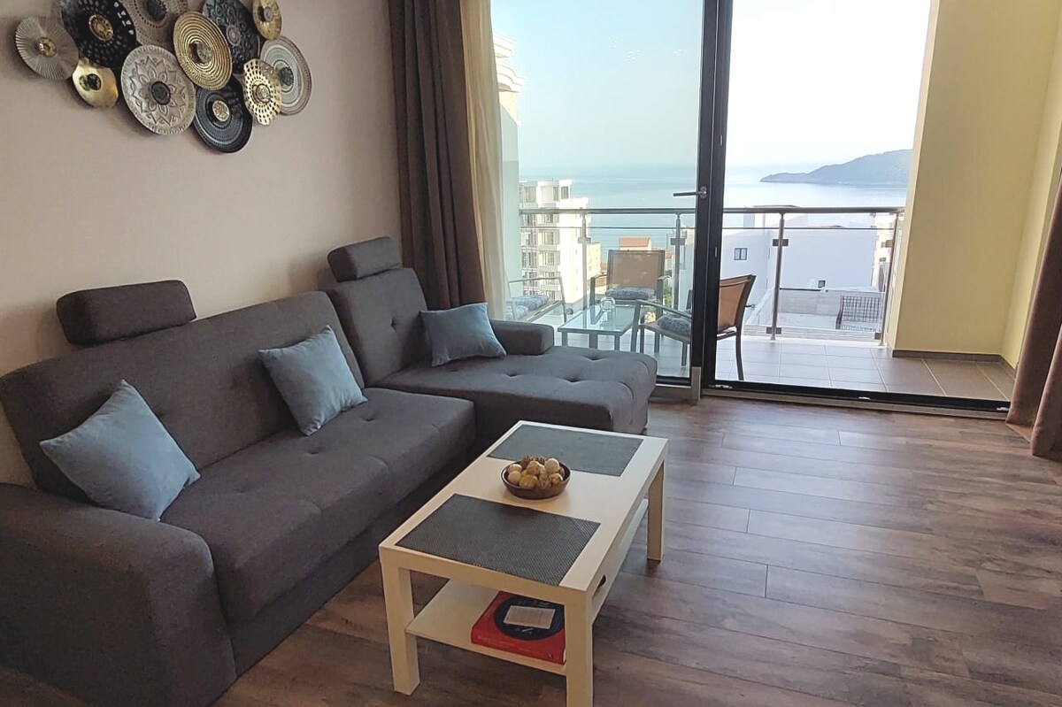 Genießen Sie einen atemberaubenden Urlaub mit Pool, Saunalandschaft, Fitnessstudio und Blick über die Bucht von Bečiči: Nur wenige Gehminuten vom Strand entfernt, bietet unsere komfortable, stilvolle und saubere Zwei-Zimmer-Wohnung in der 2021 neu eröffneten Ferienanlage nicht nur ein wunderschönes Panorama, sondern auch Ausblick auf eine unvergessliche Zeit in Budva.