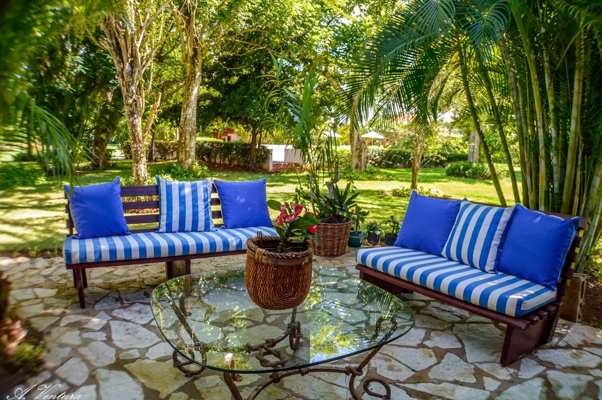 *全新翻修!* *Wi-Fi 速度超快!* 每日女傭,會做菜(超棒)和打掃! Casa de Campo美麗、微風和寬敞的3間臥室別墅 大型按摩浴缸,配備燒烤設備 3間臥室-全部配有冷氣 主臥室-加大雙人床 2 間小型套房-每間套房有兩張標準雙人床 總共5張牀 可以進住10人