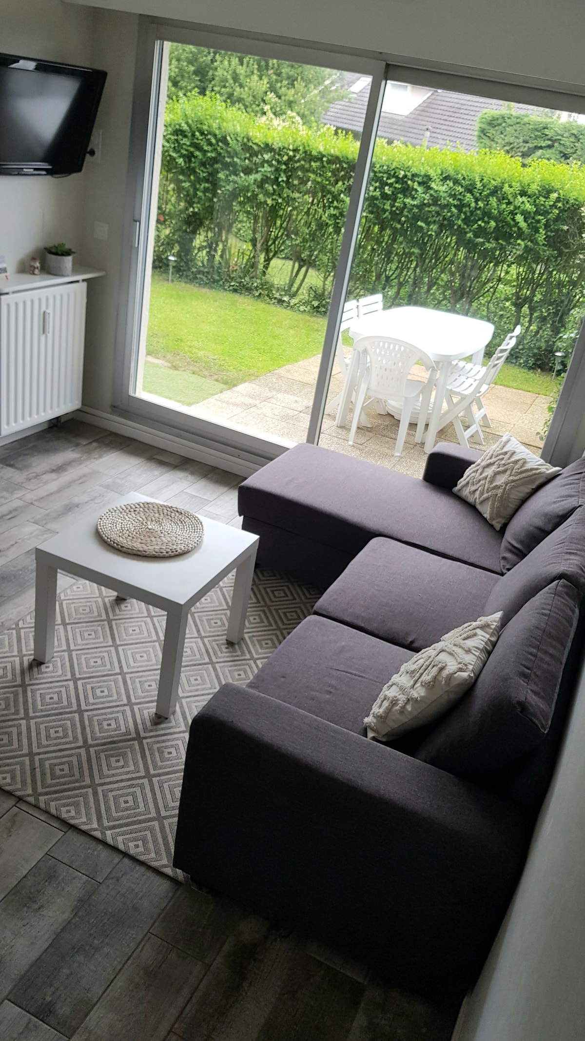 舒適的公寓,靠近 OUISTREHAM- Riva Bella 市中心、海灘、賭場、海水療養、市場。臥室有陽台。全新床墊 180x200。 客廳-起居室,陽光明媚的庭院陽臺、用餐區、沙發床、沙發、電視 設備齊全且功能完善的廚房 浴室配有意大利淋浴間,獨立廁所 住宅區內有停車位,可預留,可停放自行車。 為您提供床單和毛巾。