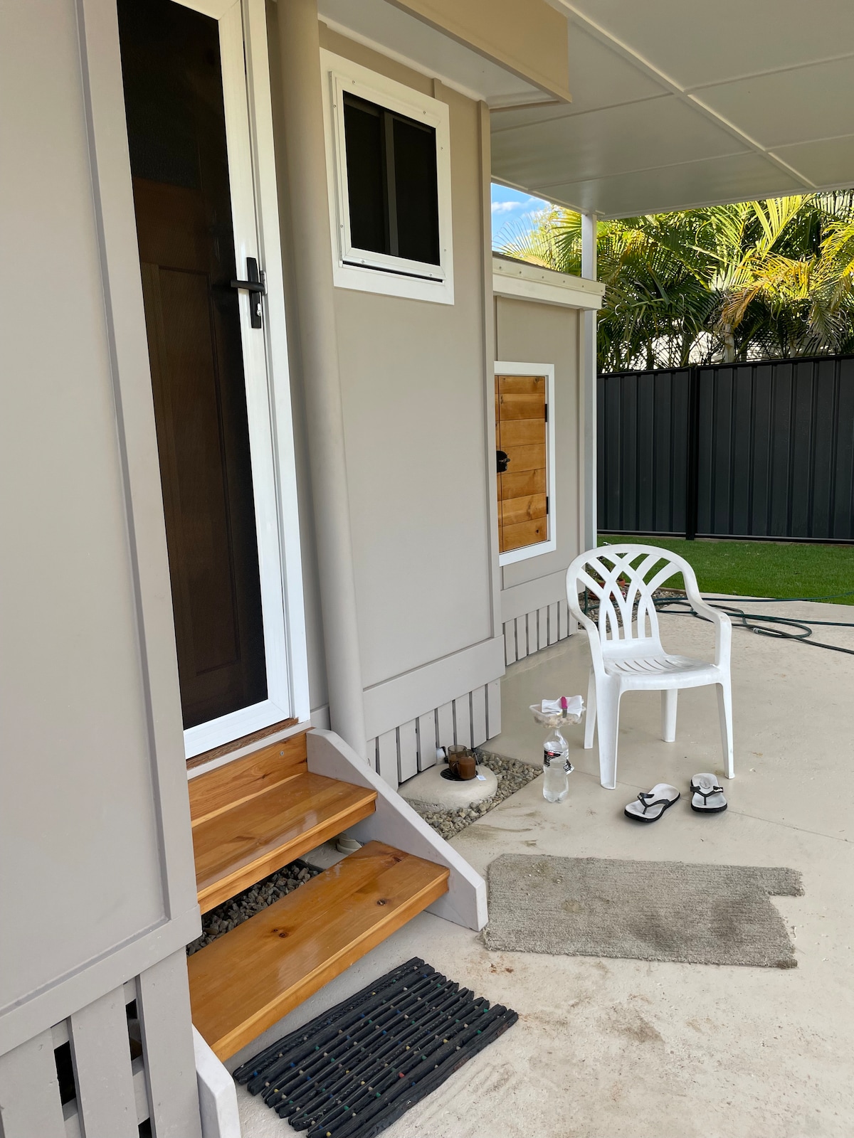 Granny flat with private entrance and with full kitchen facilities and split system aircon. House was only built 7 years ago, and granny flat installed 18 months ago, so everything is near new. You'd have the full granny flat to yourselves, and the interior does not overlap with the main residence. In close proximity to the Sandstone Point Hotel. Can arrange space for a caravan or boat should you decide turn up with one.