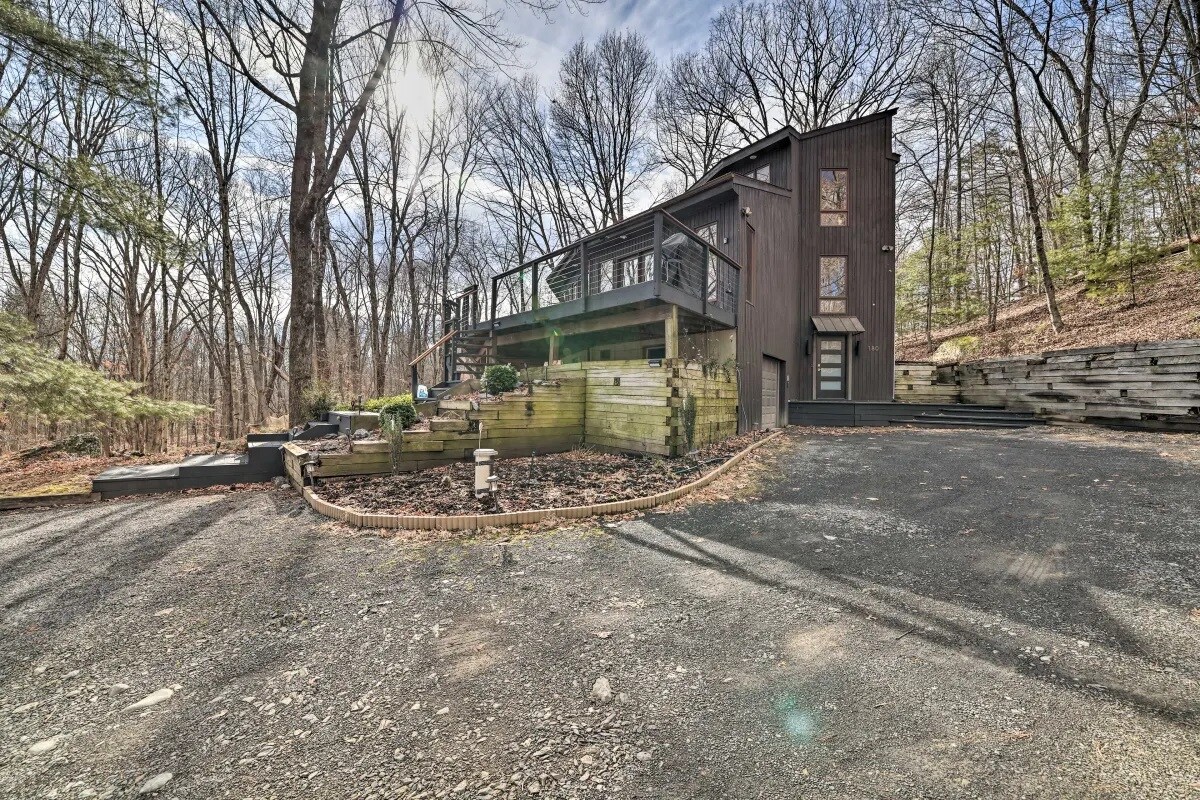 位於Pocono 's ,距離曼哈頓僅1小時30分鐘,距離費城不到2小時! 我們放鬆的A型度假木屋靈感來自歐洲設計/建築,讓您感受到波科諾斯北歐房源的感覺。 享受4個大甲板,您可以在「叢林般的」後院聽到鳥鳴聲、蝴蝶、鹿和其他野生動物。 距離最熱門的健行目的地和瀑布僅幾分鐘路程。 歡迎攜帶寵物入住( :
