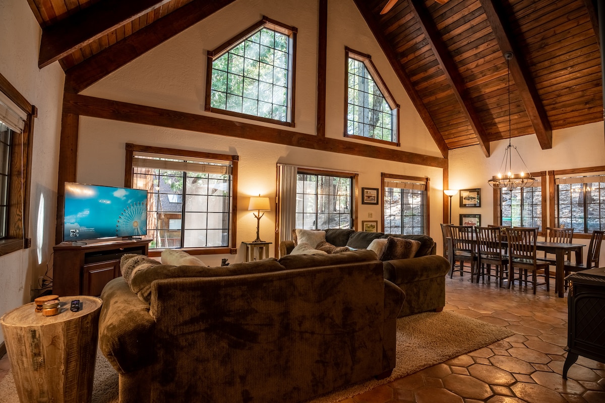 我們美麗的Deer Run度假木屋位於Stanislaus森林,靠近公園、美麗的景觀、餐廳、遊泳、釣魚、徒步旅行和滑雪,並可通往私人社區湖泊...您一定會喜歡我們的度假木屋,配有高拱天花板、燃木爐、現代而鄉村裝飾、舒適的牀和高級家具、開放式廚房和空間寬敞...適合情侶、獨自冒險者和最多10人的家庭/團體。 地理位置優越,離什麼都很近。 Wkly/mo價格也一樣!對不起,沒有寵物。