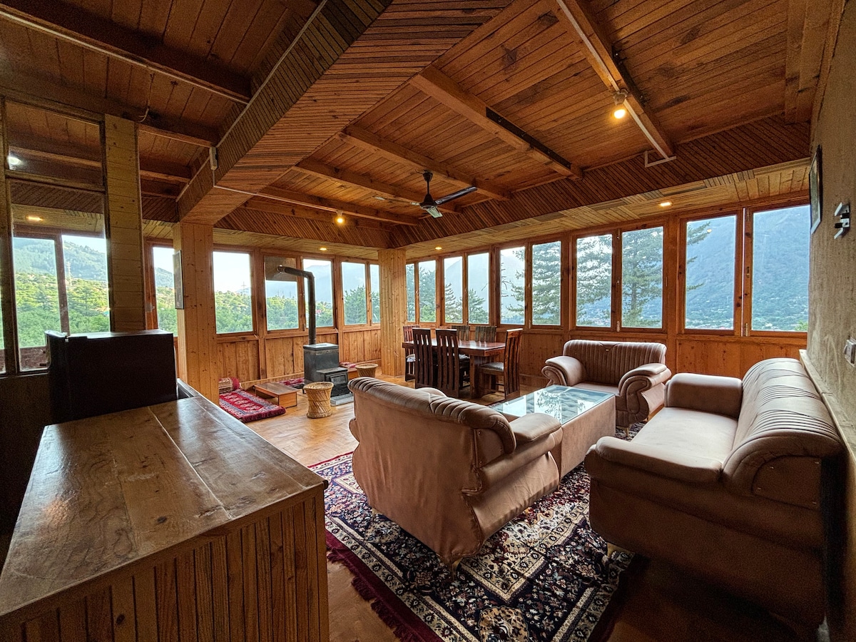 Rooms are furnished with double bed adjacent to the snow capped mountainside window and attached washroom with respective rooms. Drawing room is your workstation and ample space is provided with work from home setup. Along with these amenities, We take care of not so regular dining table. The traditional dinning tables have been arranged for nice supper. We provide you with fully functional kitchen having gas stove and utensils.