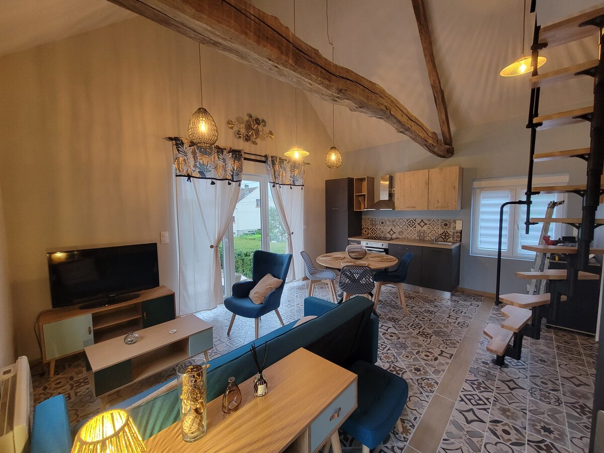 讓自己享受放鬆和大自然的時刻!這間 40 平方公尺的住所是房東家的附屬建築,但它是獨立的,並且為您提供了愉快入住所需的一切。它包括一個大的主房間(廚房 - 洗碗機、微波爐、烤箱、冰箱、電磁爐、咖啡機等... - 電視、沙發床、壁爐等...)、一個帶馬桶的淋浴間以及一個帶燒烤和戶外傢俱的露臺。