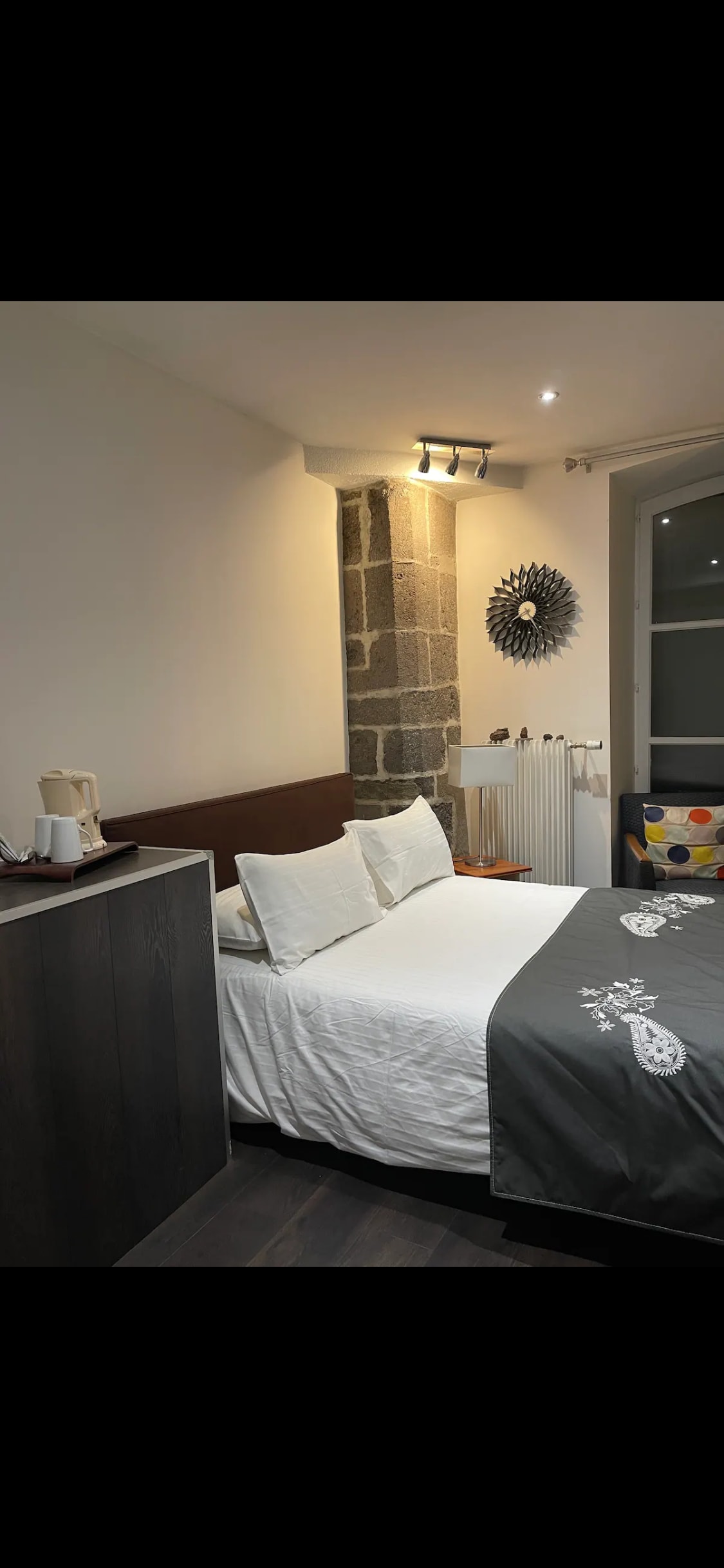 迷人的公寓,有免費車庫和露臺,坐落在市中心的Volvic一棟古老的石頭建築中。 溫馨舒適的氣氛。 寬敞明亮的天窗周圍有U形。 南邊是大教堂和北邊的克萊蒙海岸的美麗景色。 ⚠️在三樓沒有電梯,行動不便的人無法進入寬敞明亮的⚠️樓梯,但仍然可以步行上去 😉