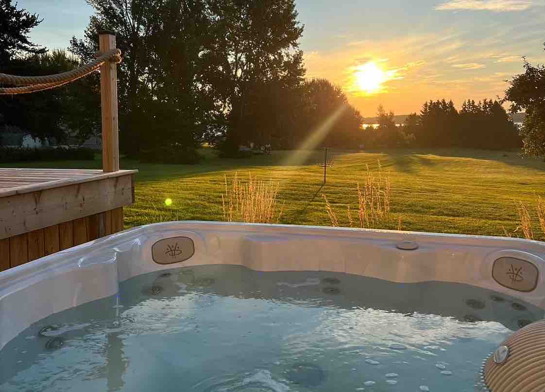 Chuchi 在 Shediac Bridge 的小屋內的按摩浴池。