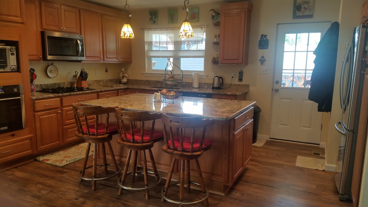 這間寧靜的客用住房位於埃爾伍德市外60英畝的樹林中,與親朋好友一起放鬆身心。 有三間臥室、設備齊全的廚房和舒適的壁爐,您一定會住得愉快。 5月中旬至9月期間享受溫水泳池(參見價格)。 距離Stonewall高爾夫俱樂部、日內瓦學院僅需幾分鐘,距離Moraine州立公園和McConnells Mill等景點僅需很短的車程。 謝謝您讓我們度過美好的2025年! 冬季可訂狀況的私人訊息。