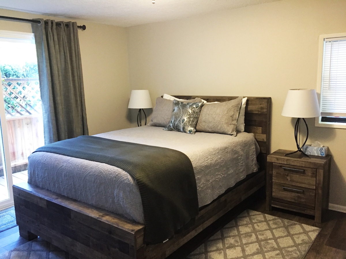 PORTLAND CITY PERMIT #14-248488-000-00-HO Debi's pronouns: she/her Rob's pronouns: he/him *Private Hot Tub *Separate Entrance *Private Parking *King Bed, Tuft & Needle Mattress *Large Garden *Kitchenette with Full-size Fridge and Cooking Supplies (No oven) *Gas BBQ *Good Location *Garden Hammock in good weather LGBTQ Friendly, All Races Welcome. We celebrate diversity and welcome all loving hearts, regardless of gender or race. Portland Permitted Property