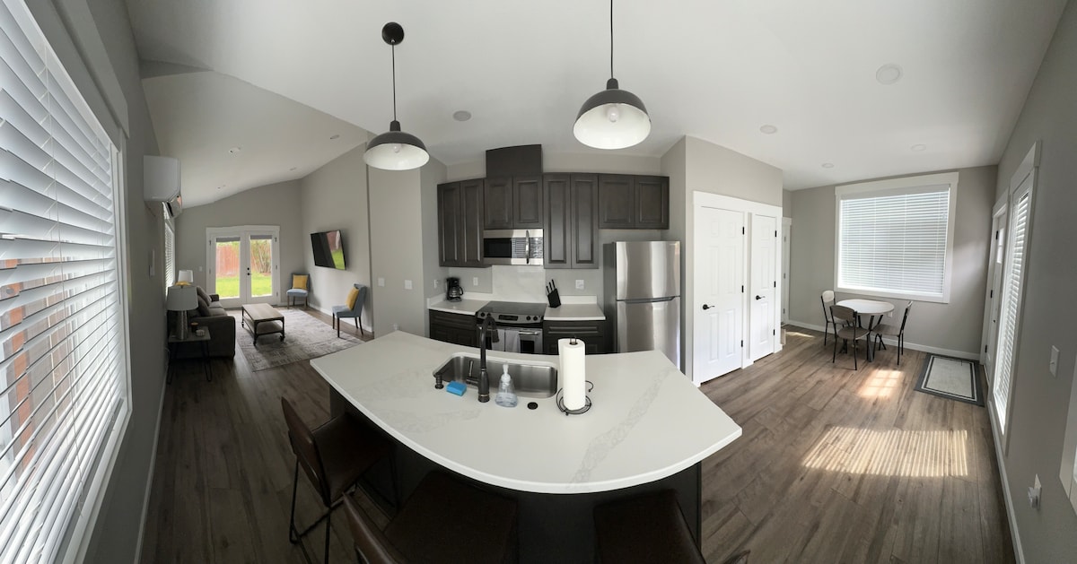 我們的小屋面積為280平方英尺,有自己的入口和停車位。 這是一間有小廚房的單間公寓,並設有帶大型淋浴間的全套衛浴。 我們有一張雙人全尺寸墨菲牀和一張沙發。 我們的伯恩山狗,Alyena和我們的貓總是熱切歡迎您的到來。 狗很會叫,但超級友善,只想讓你把球扔給她,最好是一整天。 我們可以彈性處理入住事宜,只需發送訊息給我們即可。