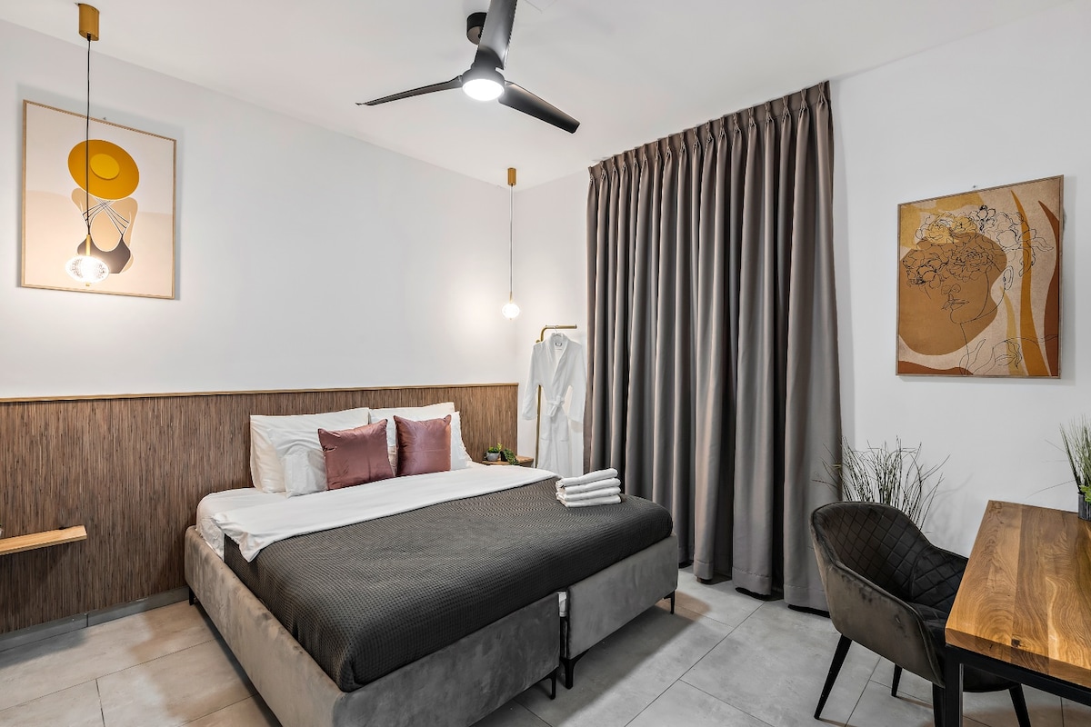Enjoy a comfortable stay in this boutique hotel room in the Old City of Be’er Sheva, conveniently located near hospitals, the courthouse, and Ben-Gurion University, all easily accessible by car. The room offers a modern design and essential amenities, ideal for work, study, or relaxation, and is close to restaurants, shops, and local attractions. ✔ Comfortable Double Bed ✔ Full Bathroom ✔ Air Conditioning ✔ Smart TV ✔ Desk ✔ High-Speed Wi-Fi ✔ Self Check-In Book your dates while spots remain!