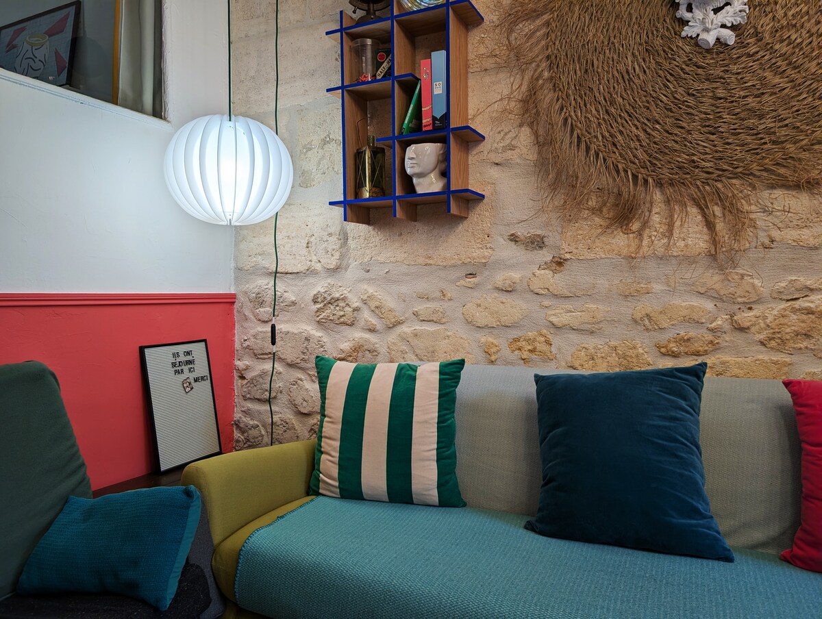 En plein cœur du quartier Saint Michel, entre le marché des Capucins et les quais de Garonne, se trouve un petit appart atypique de 43 m². Les espaces sont optimisés au maximum, la déco y est rétro et colorée, puisée chez les brocanteurs du coin. Bienvenue !