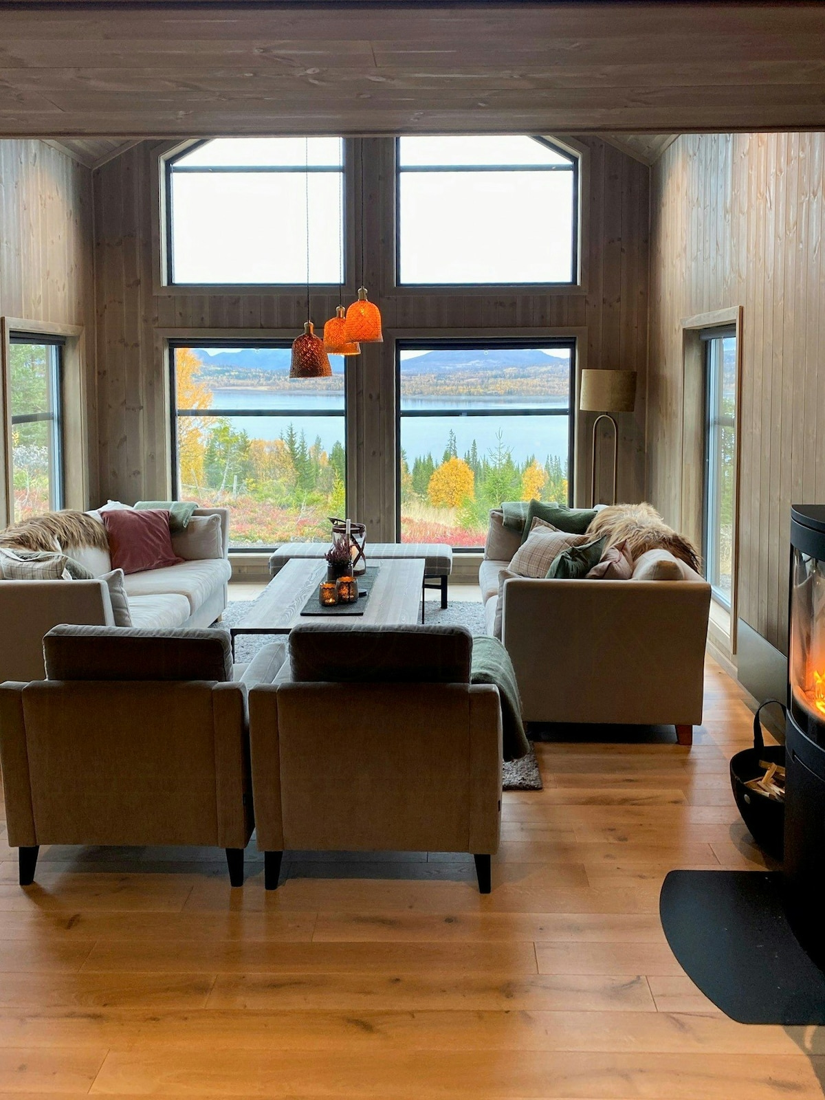This is a modern, bright, and cozy cabin on one level, with 3 (4 bedrooms), 8 beds, and everything you need for a pleasant stay in the mountains. Two of the bedrooms have fold-down desks - perfect for workation. The modern fireplace will provide both comfort and warmth after a long day in the fresh mountain air. Electricity (ex. EV charging) included in the rent. The cabin is new, from 2022.