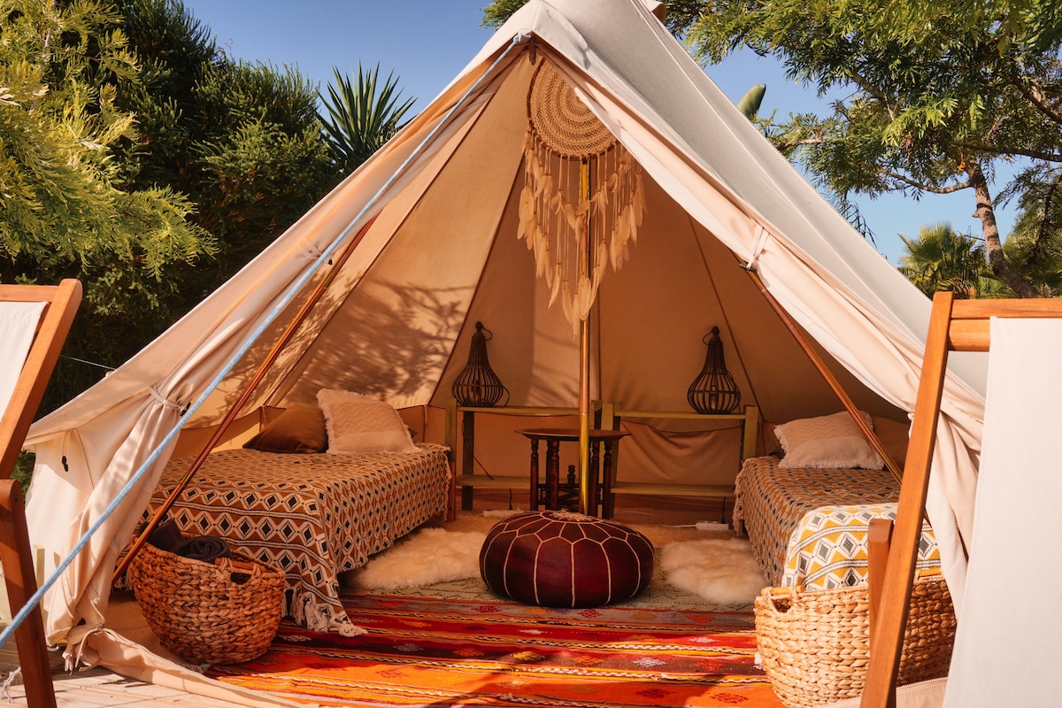 This romantic and absolute stunning Bell tent is the place to just really shift down and relax. If you love simple, pure and nature, you are choosing the right place. Perfect to come down and relax. At night the only thing you will hear is the talk between the fox and the owle. The nearest beach is 25 minutes away. The nearest supermarket about 20 minutes. When the sky is clear we have beautyful views on the ocean and the monchique mountains and the stars at night.