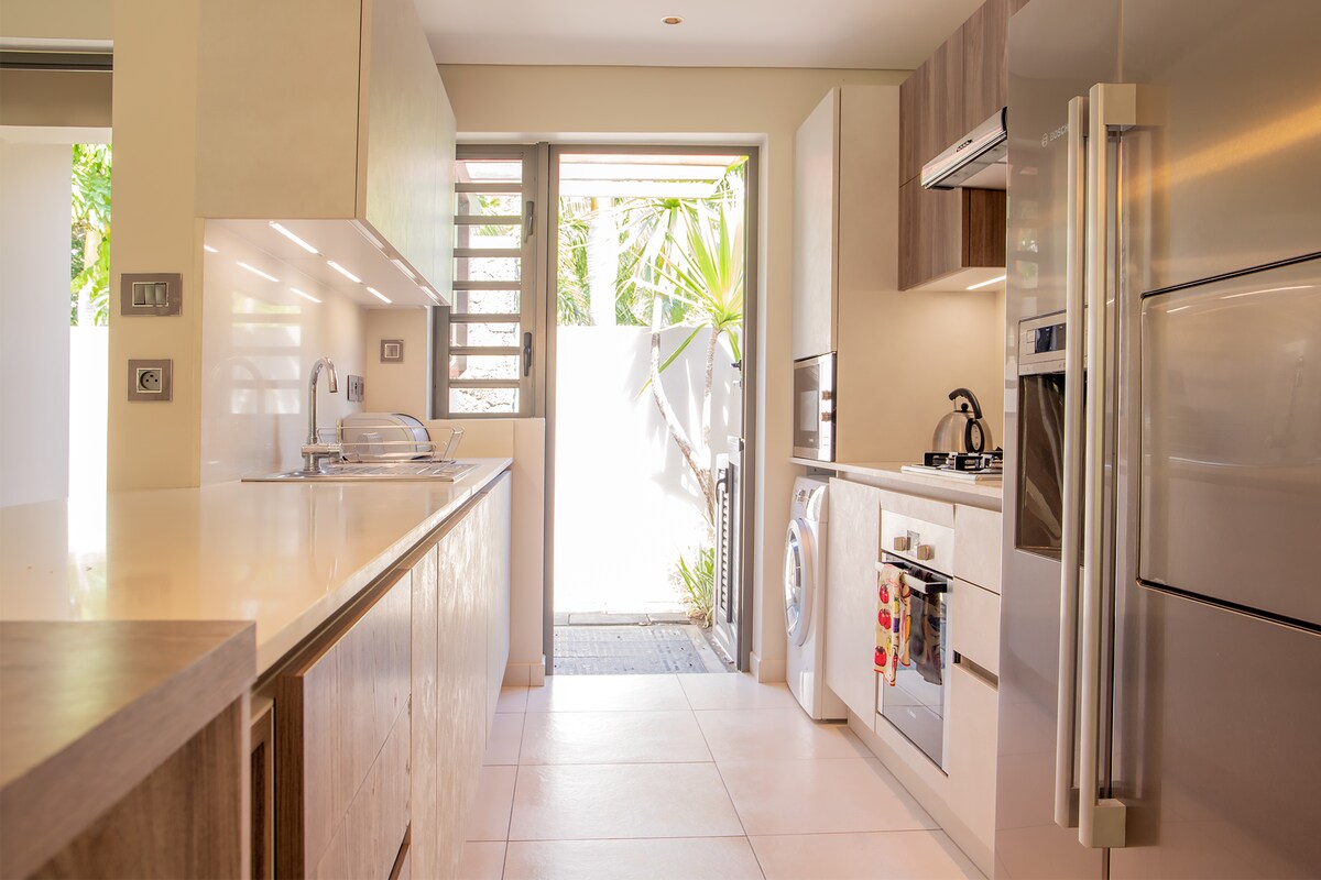 這奢華的海濱公寓可欣賞到令人驚嘆的景色,可欣賞到毛里求斯東南部的潟湖、海灘和島嶼的完美景色,非常適合與家人或朋友一起度過美好的假期。 現代風格的家具和裝飾,配有3間舒適的臥室,配有套房浴室和寬敞的起居區域。為房客提供一個私人花園,讓他們在共用泳池度過一天後,可以放鬆身心,享受安靜的夜晚,享用美味的烤肉。