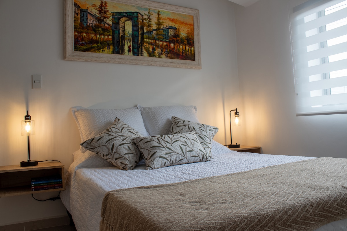Welcome to your top-floor studio in Laureles! This stylish space mix modern design with cozy comfort, perfect for a relaxing stay. Just a 5-min walk to top restaurants, bars, and local attractions. You’ll experience the city like a local! Unit comes with 1 bath, a full kitchen, A/C, in-unit washer/dryer, private & guest parking. In addition, building offers a free co-working space, high-speed fiber internet, and a balcony with views. Also, 24/7 security provides peace of mind during your stay.