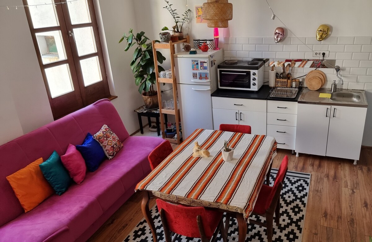 公寓位於貝爾格萊德市中心的波希米亞區(酒吧、餐廳、俱樂部、購物、農貿市場等),可容納1-4位房客。它位於三樓和最後一樓。臥室裡有一張雙人床,沙發房裡可以安排睡覺。廚房設備齊全,真的設備齊全。冬季餐桌在露臺或溫室上。浴室設備齊全,配有大彩色玻璃窗和洗衣機...