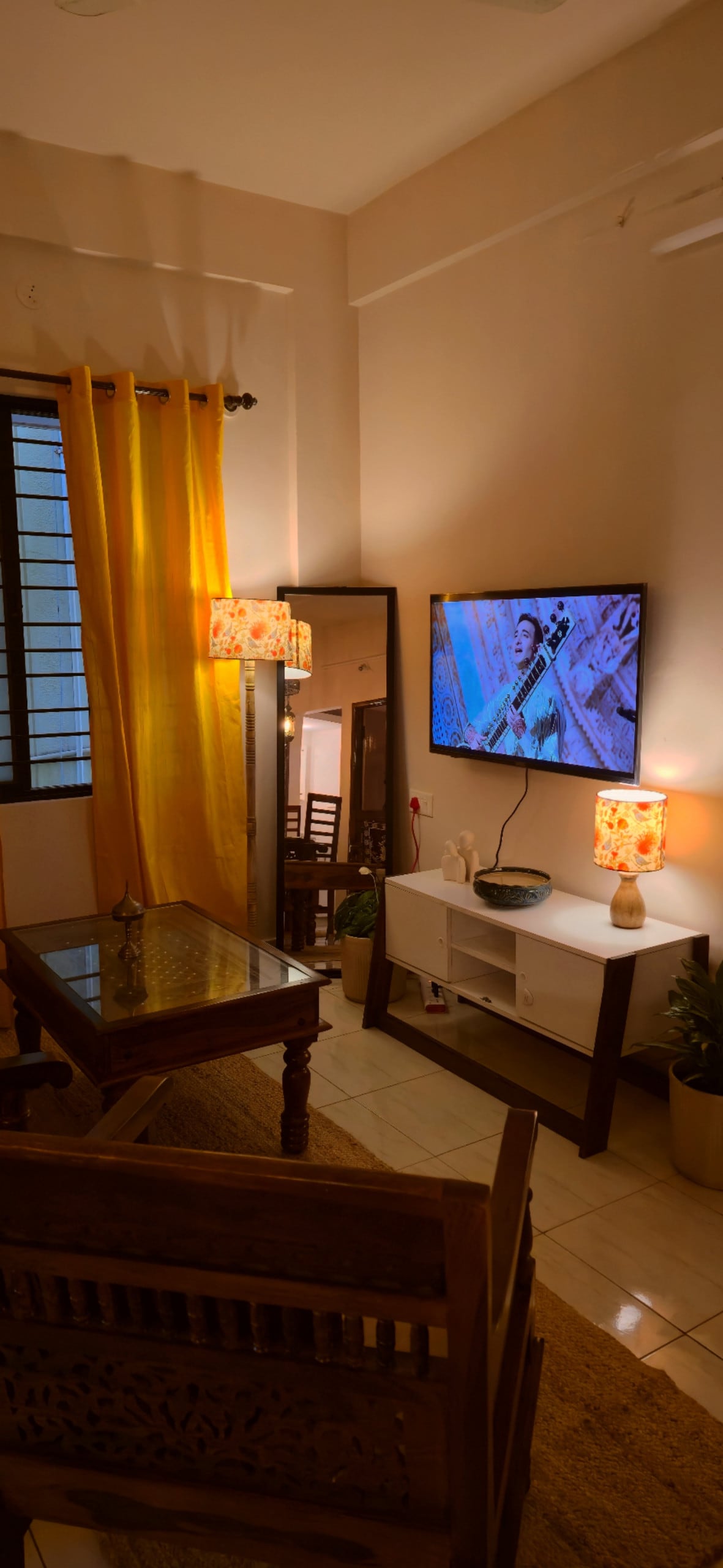Experience the warmth of a thoughtfully curated antique-themed 1BHK, featuring handcrafted wooden furniture, soft ambient lighting, and a calm heritage vibe. Located just 100m from Wind Tunnel Road, you’re close to cafés, pubs, supermarkets, Manipal Hospital, malls, and local temples—everything within easy walking distance for a truly effortless stay.