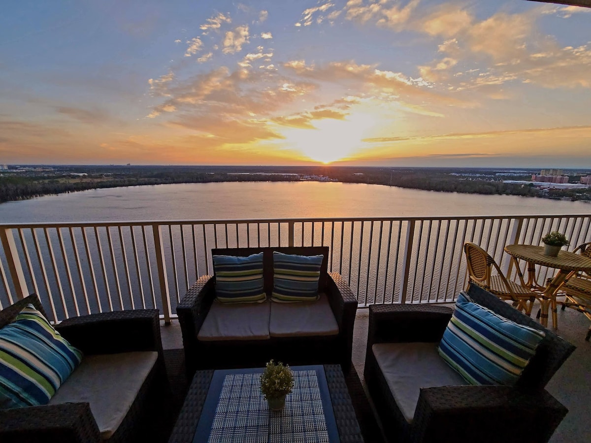 面向迪士尼的迷人、寧靜湖景頂層公寓