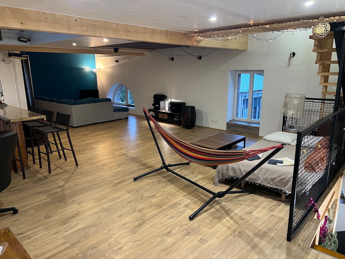 歡迎來到L'Alcôve Secrète ,我們的套房適合中世紀/文藝復興愛好者,可使用私人水療中心和各種配件,供您享受。 您會發現一張160x200的床、一個140x80的淋浴間和通往外面的通道(等待佈局)。 提供WiFi、茶、咖啡、床上用品和毛巾。 請注意,高度受限,尤其是在地下室,可能不適合身高超過1.90公尺的人士。