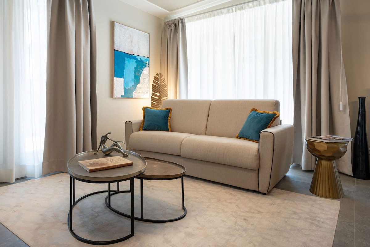 公寓位於佛羅倫斯市中心一座安靜的十六世紀前修道院內,毗鄰最著名的精品店街道托爾納布奧尼街,周圍有最好的餐廳。 公寓經過優雅的翻新,配備了精美的裝飾,例如2間浴室的華麗大理石或迷人的燃氣壁爐,以及所有舒適的Wi-Fi、空調和設備齊全的現代廚房。 步行不到10分鐘即可抵達主要的旅遊景點。