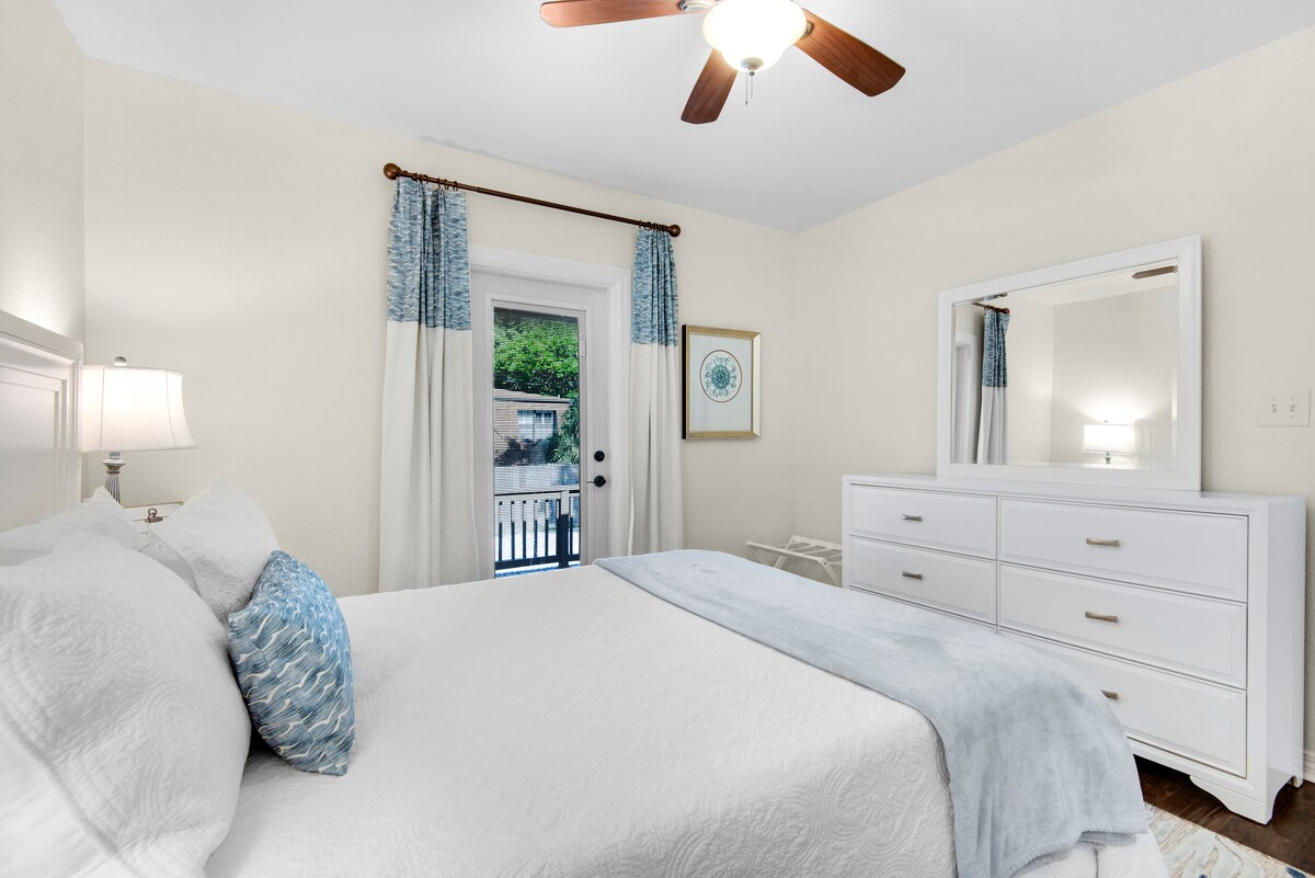 精心策劃的風格,步行即可抵達市中心的酒吧和餐廳,開車15分鐘即可抵達彭薩科拉海灘! 這套公寓設有設備齊全的廚房、獨立私人入口、快速高速網路、單元洗衣機和烘乾機、加熱浴室地板和商業級隔音。 公寓擁有11英尺高的天花板、100%c棉豪華床上用品和枕頭、淋浴間和私人專用停車位,距離入口僅幾步之遙。