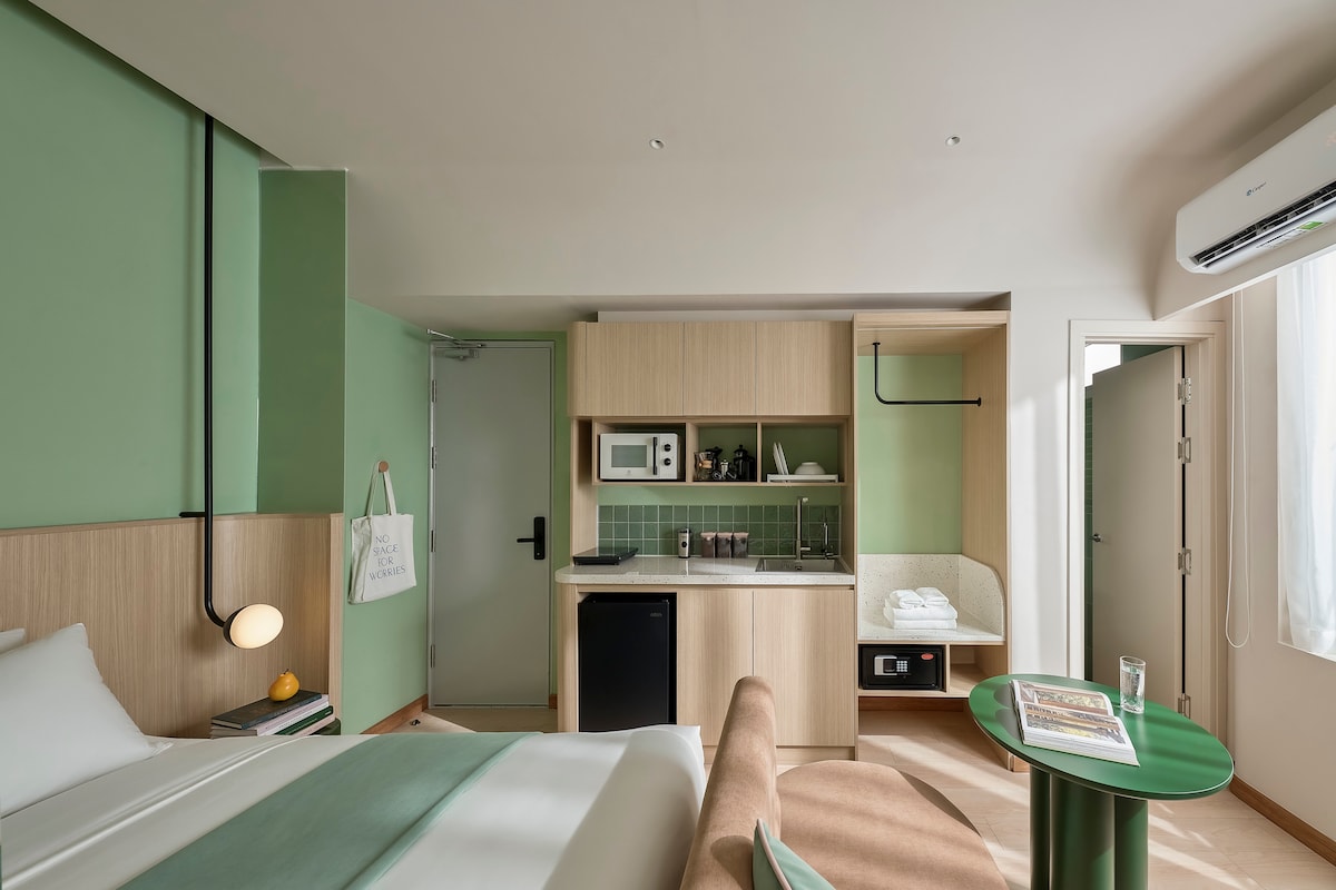 成立於2023年,我們提供高品質的短期和長期服務式公寓,位於繁忙的街道上,附近有著名的咖啡廳、餐廳、Circle K和便利商店,步行幾分鐘即可抵達碧文街(Bui Vien)、陶丹公園(Tao Dan Park)。與飯店相比,我們提供1間獨立的單房公寓,配備現代風格、廚房、陽臺、隔音門窗、辦公桌、屋頂花園、電梯、定期清潔和「家外之家」的舒適。
