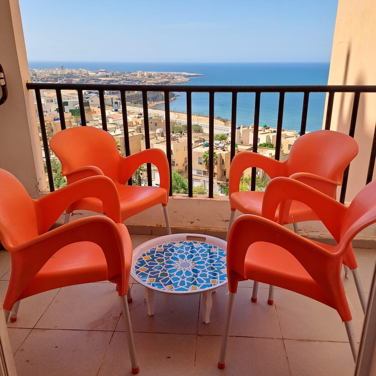 俯瞰Mostaganem灣的美妙T5公寓,時尚、寬敞,非常適合家庭入住。 24小時安全的住宅有保安停車位、屋頂泳池。 🌴屋頂泳池、美景和☀️美麗的日落🤩 每天都能享受約 2 小時的私人屋頂時段,僅供您和您的家人使用。 放鬆、隱私和全景Mostaganem和大海的全景…難忘的住宿體驗🏖️