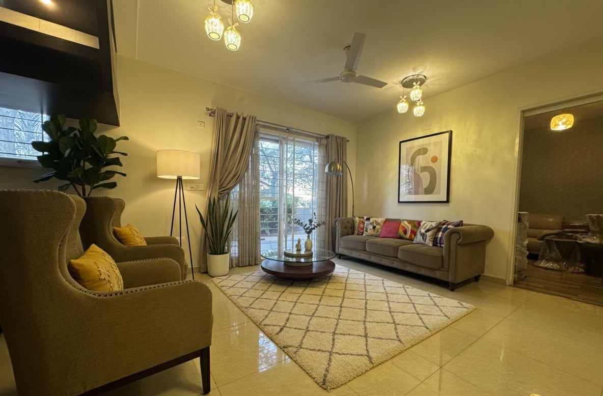 Step into a modern Spacious 4BR, 3-bath duplex featuring recliner,Wifi, 55"TV,Fridge,fully equipped kitchen with gas connection, microwave, Airfryer, fridge,Grill and dining area.Swimming pool access in clubhouse at Rs150/head 7:30AM-5:30PM Highlights of the home include: • 🛁 Luxurious bath with bathtub & hot water • 🏠 Daily housekeeping + basic grocery • 🌿 Two balconies + open terrace with refreshing green views • 🧺 Utility area with washing machine for longer stay