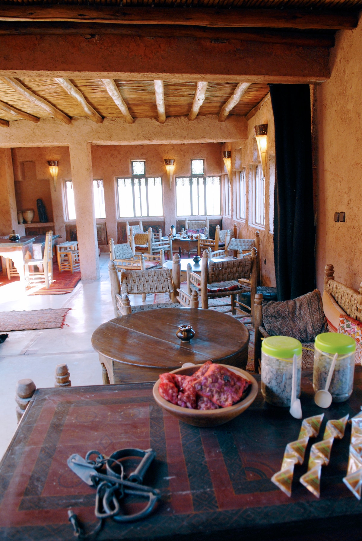 飯店位於古老的卡斯巴內,他的舊房子由土壤和花園而成,靠近河流。 這是村裡一個非常平靜的地方。您可以在我們的不同露臺上欣賞美麗的景色。 我們的餐廳提供用當地和有機產品準備的美味摩洛哥美食。 房間可俯瞰花園和山脈的美景。 它不提供獨立浴室,配有熱水淋浴間、電視、空調和免費WiFi。