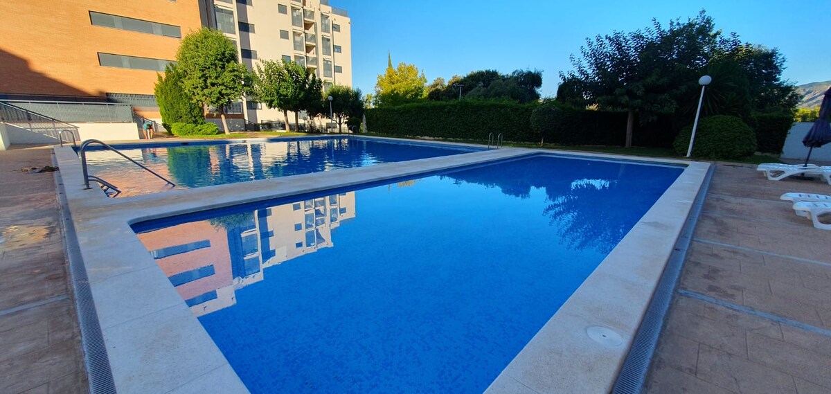 Tu apartamento ideal con piscina junto a la playa.