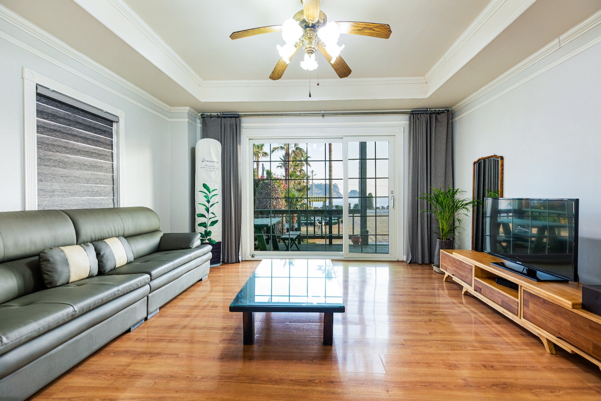 this is a two-story detached house. we are living in ground floor with preparing to help you. and you can stay in second floor and front door is other thing. the second floor is duplex type and there are two rooftop terrace, a large salon attic. one terrace is sea view and another one is Hallasan Mountain view. living room is like a greenhouse cafe with huge glass window. ground is kitchen garden. I love to glow various kind of plants. if you cook something, you can picking this vegetables.