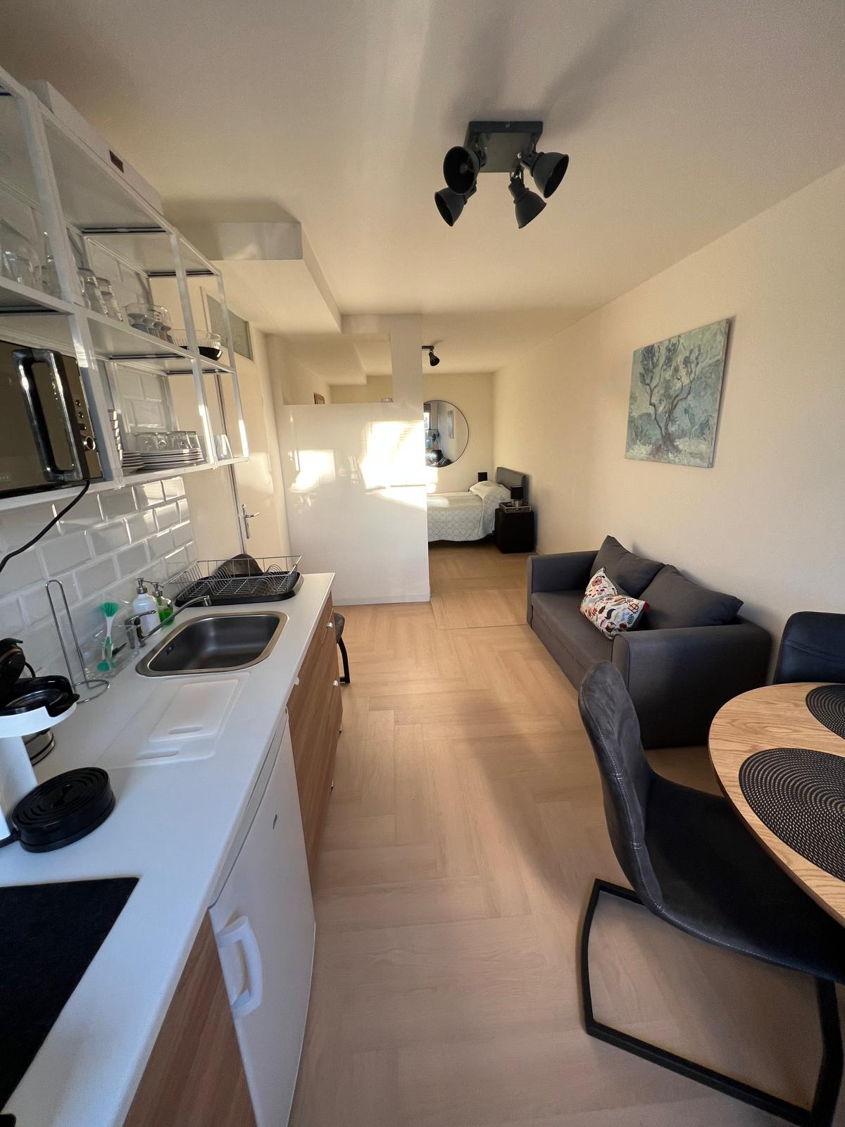 客廳有一個舒適的休息區,配有電視(可收看所有荷蘭頻道)和WiFi。 與臥室和浴室一樣,客廳也有一個帶落地窗的室內陽台。 客廳經過用餐區,連接到一個小廚房,配有1個電磁爐、冰箱、微波爐和餐具,足夠準備簡單的餐點。 早餐可以提前準備好,需額外付費。