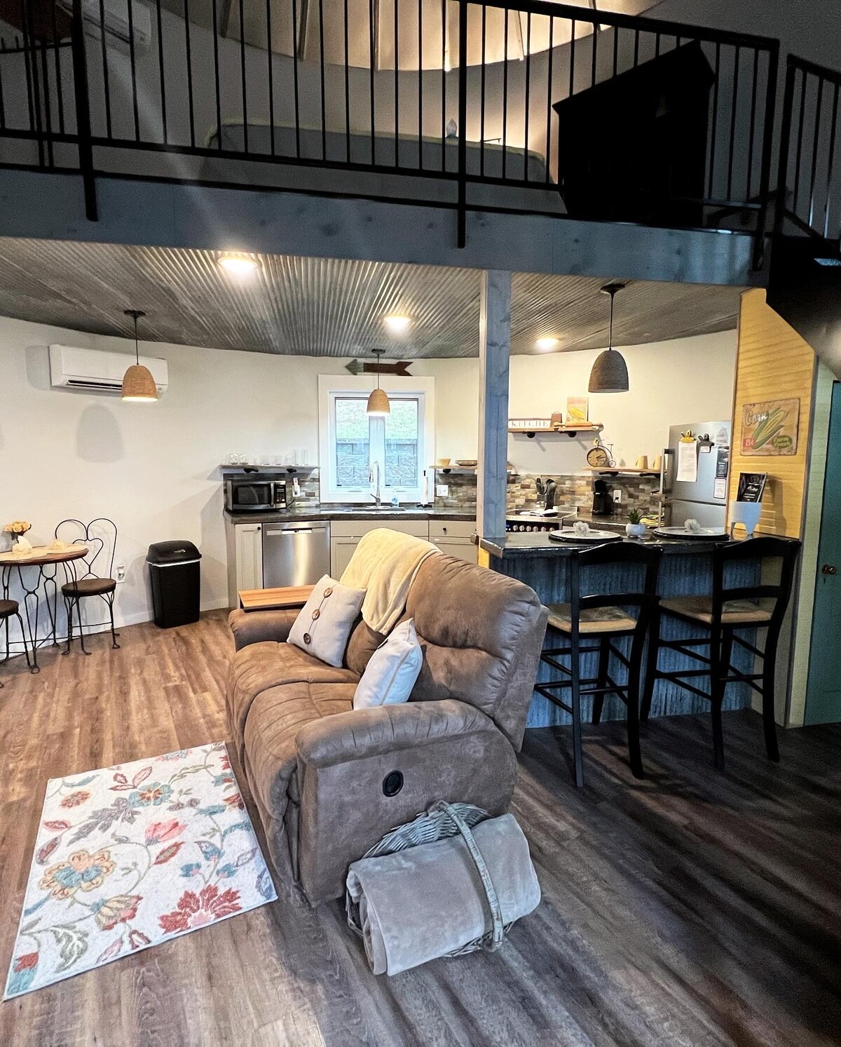 我們的建築曾經是赫曼早期最初的酒館之一,稱為農夫之家。 公寓「B」位於二樓。非常適合您前往赫爾曼( Hermann )的旅程。 獨立公寓,加大雙人牀。此空間有潛力讓大型派對連接。針對大型團體,請查看我們的其他房源...... 5 th & Market Get Away The Hide Away on Market